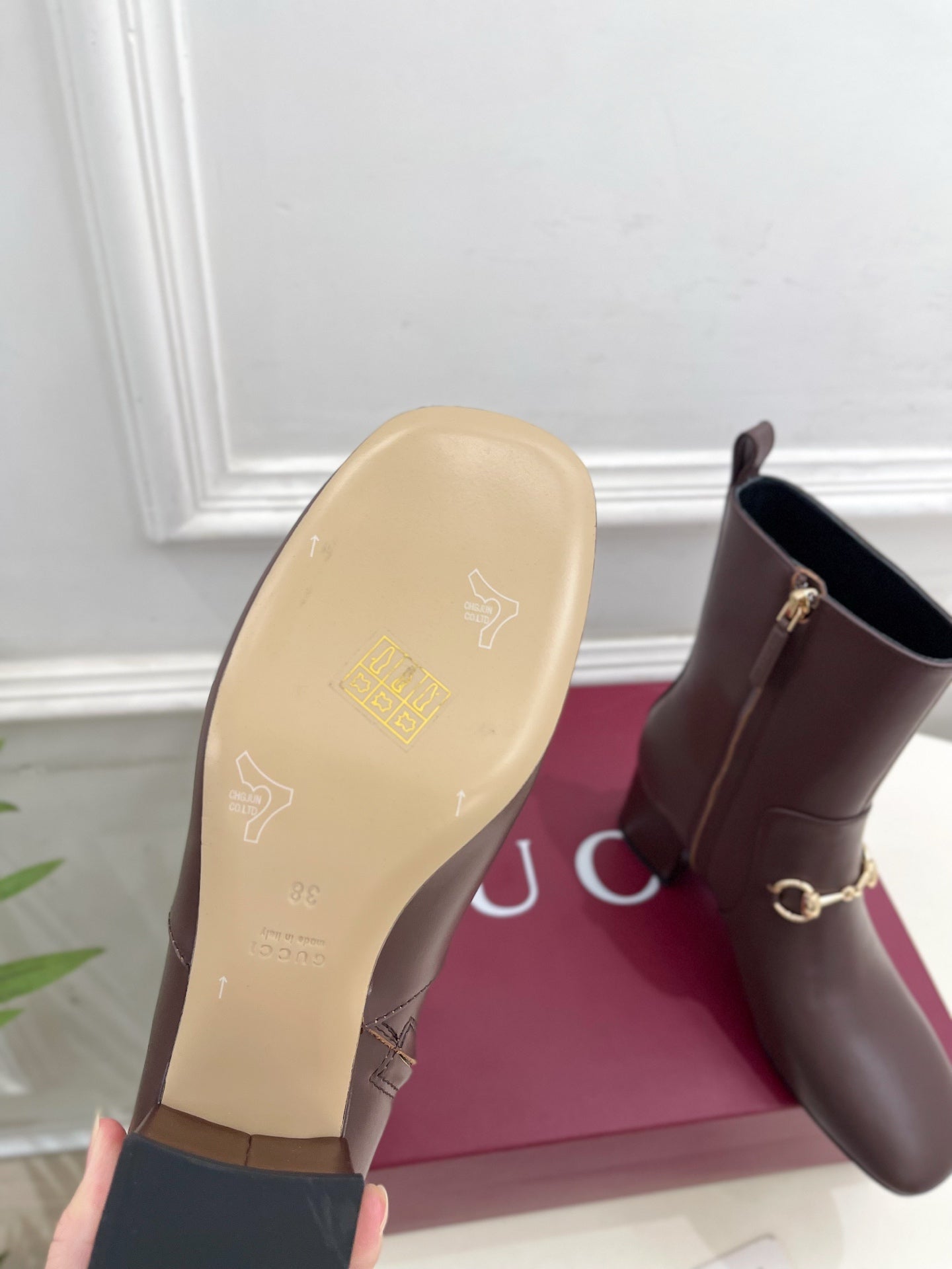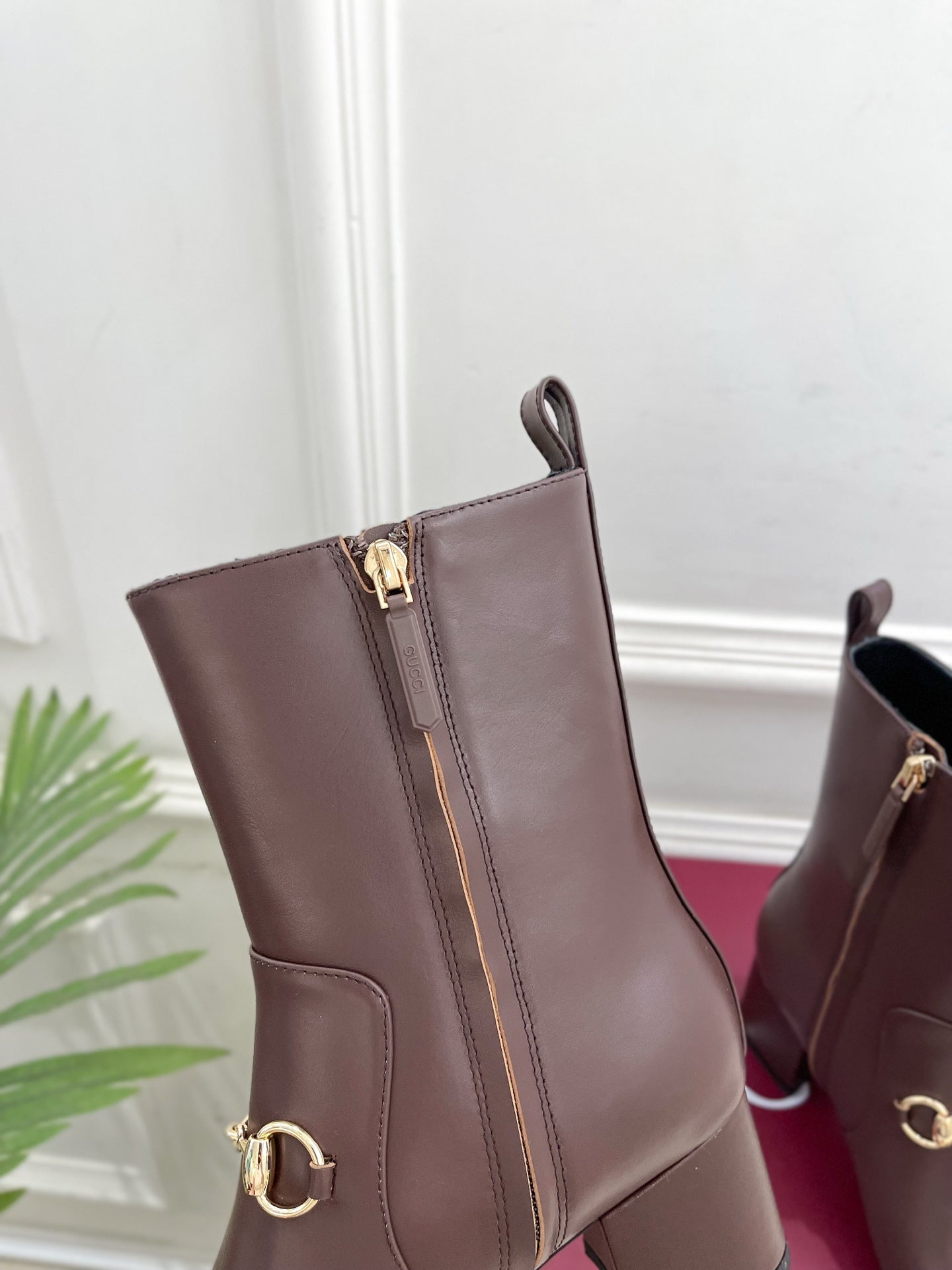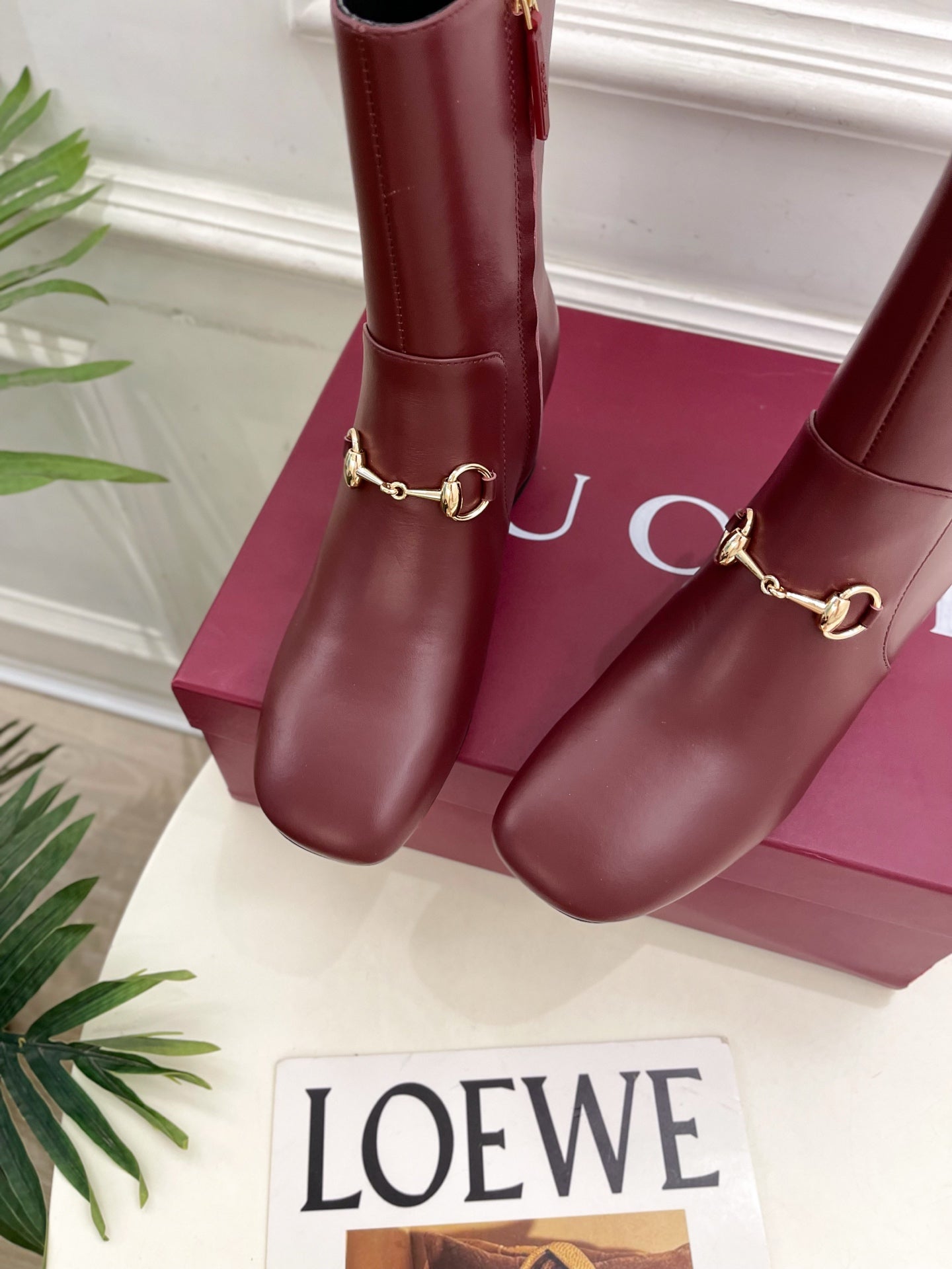 GG horsebit chunky heel ankle boots burrgundy calfskin 536060