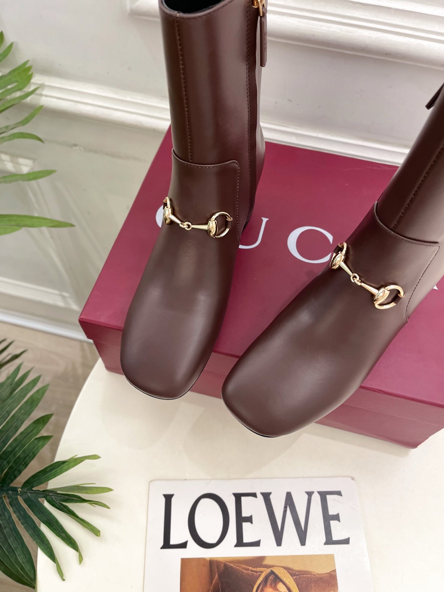 GG half-D chain buckle ankle boots brown suede 536055