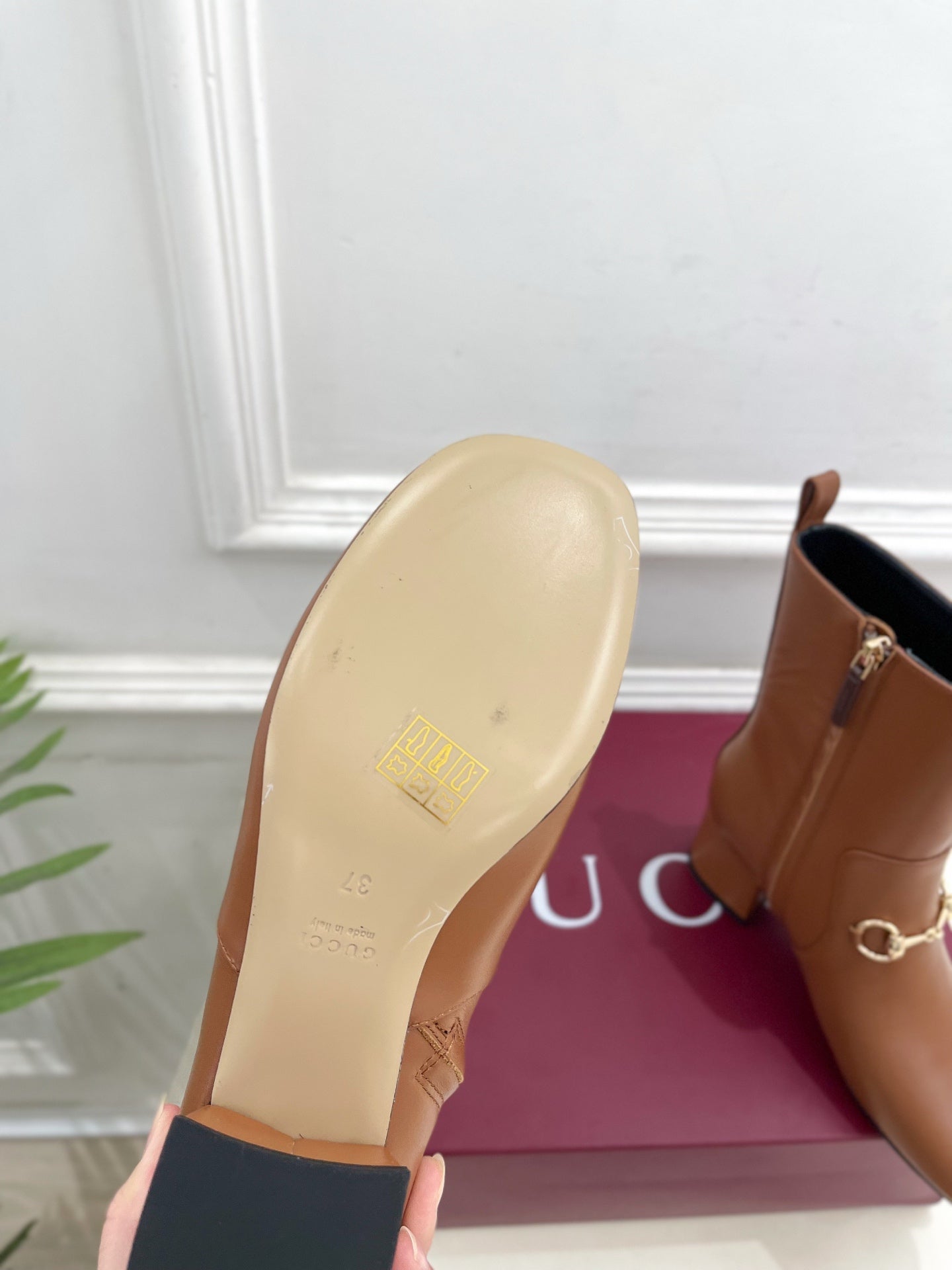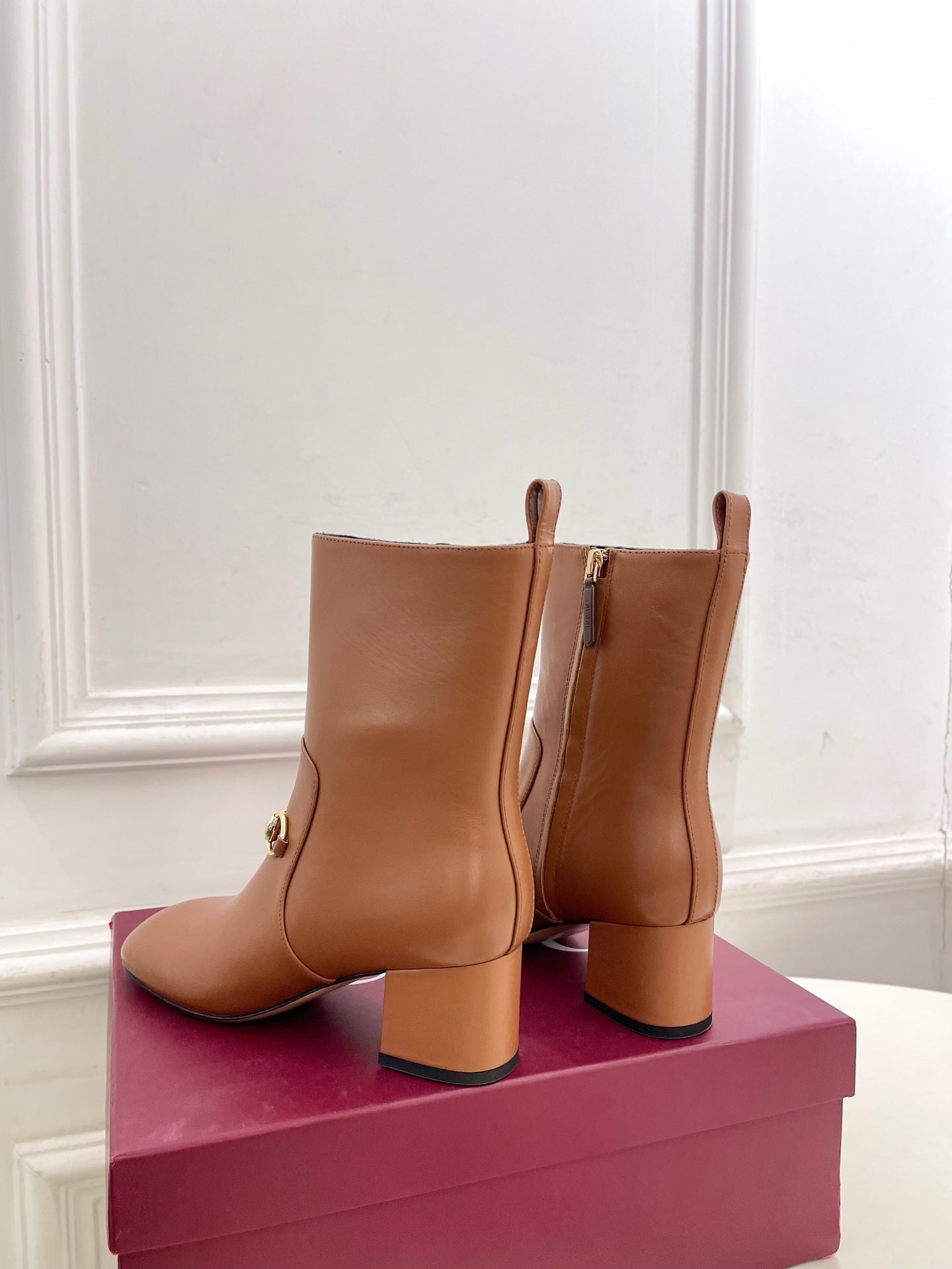 GG horsebit chunky heel ankle boots caramel brown calfskin 536059