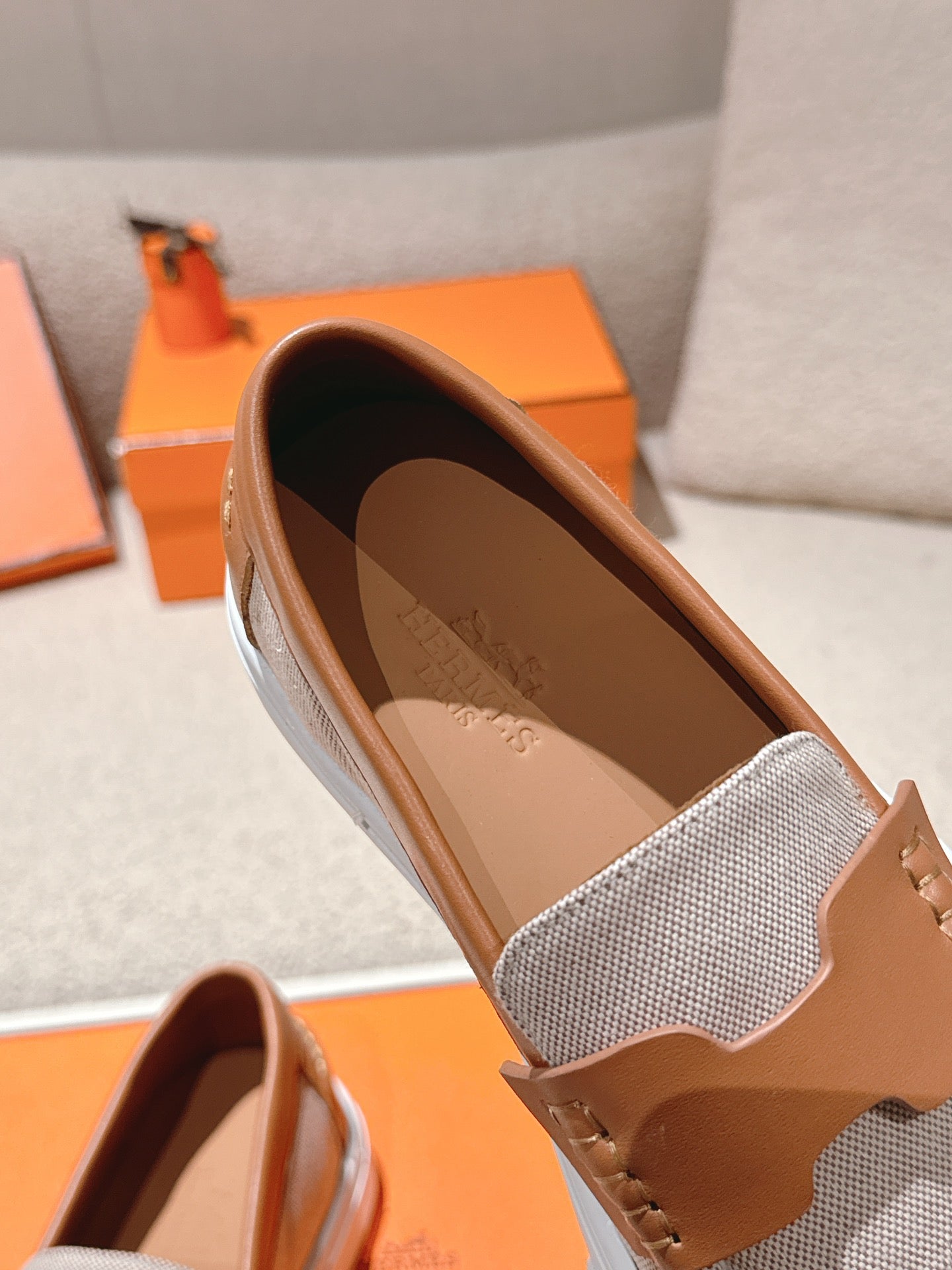 HM 25ss Platform Loafers Gray Brown Denim Cowhide 577166