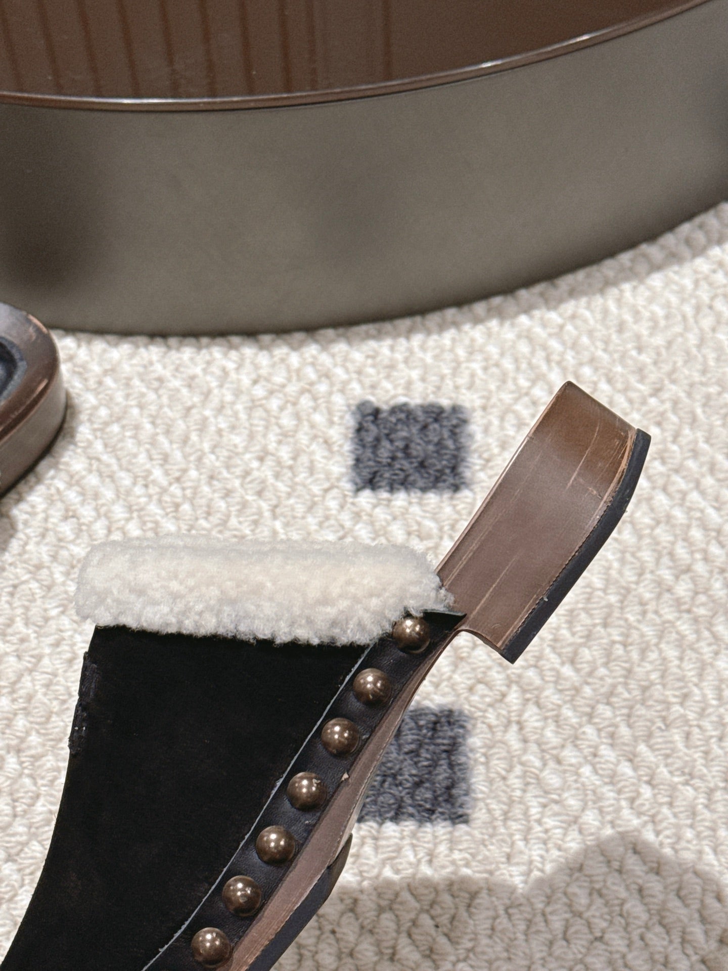 Loewe 2025 Slipper With A Buckle Strap Black Fur Leather 556052