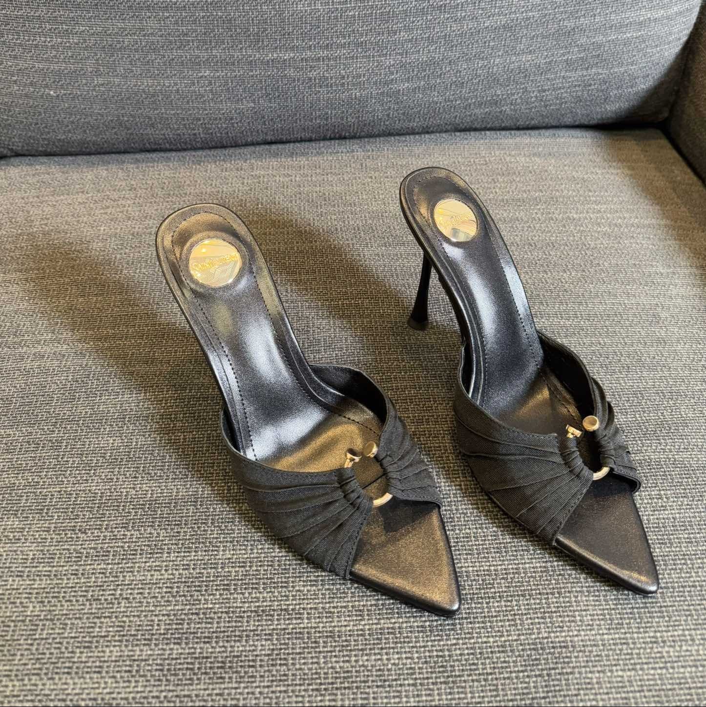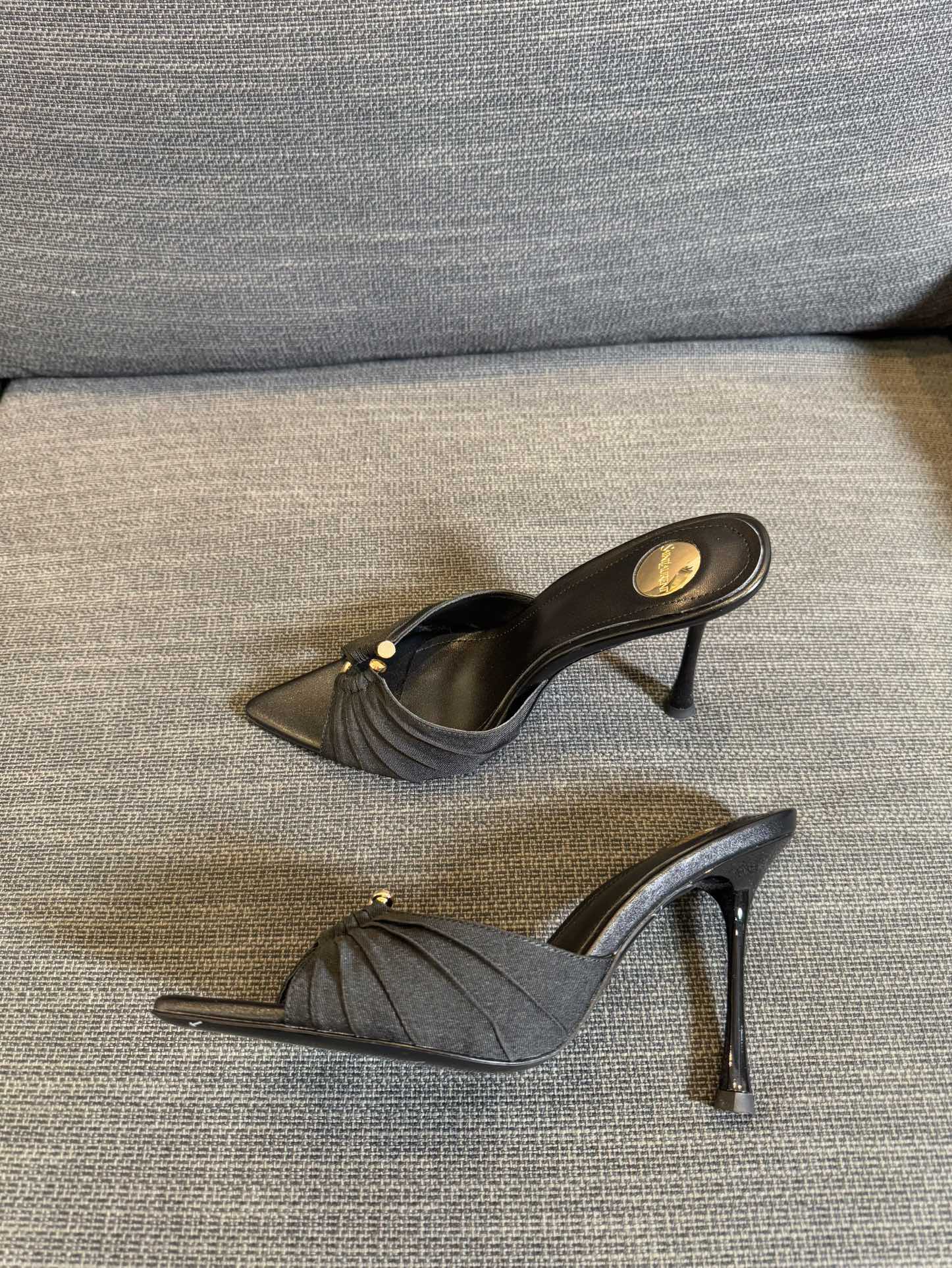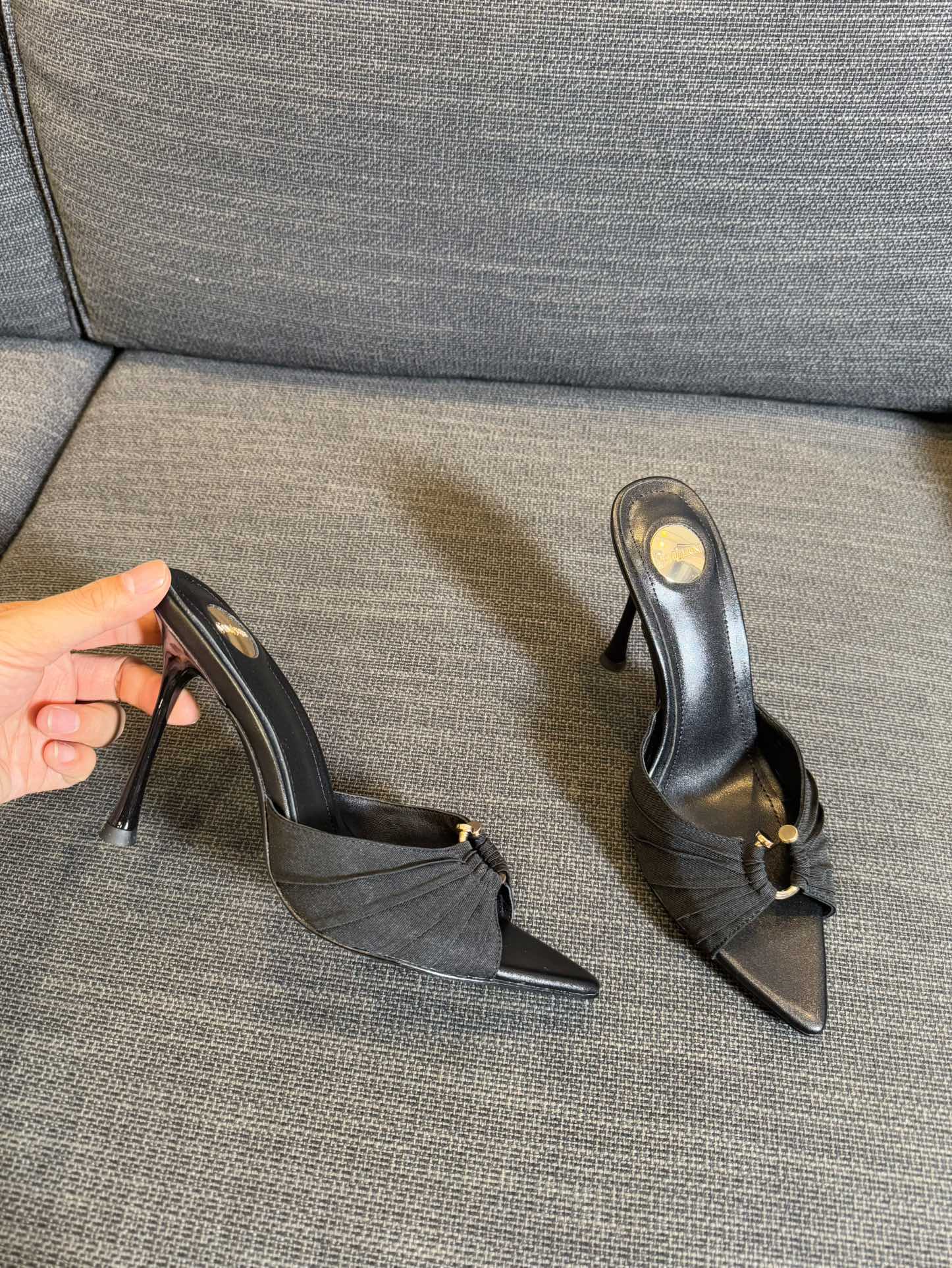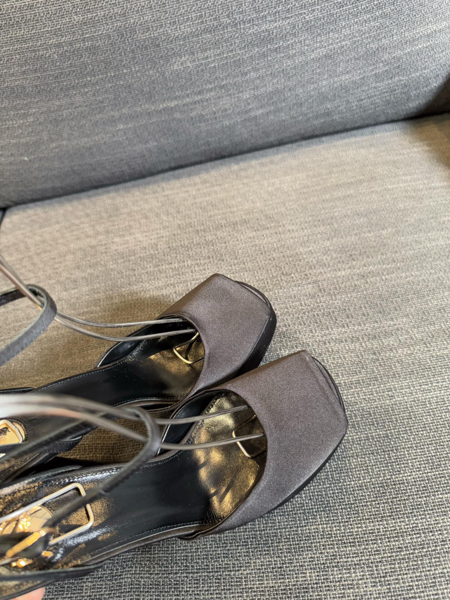 HIGH SANDAL ATTACHED GEM IN BLACK SILK