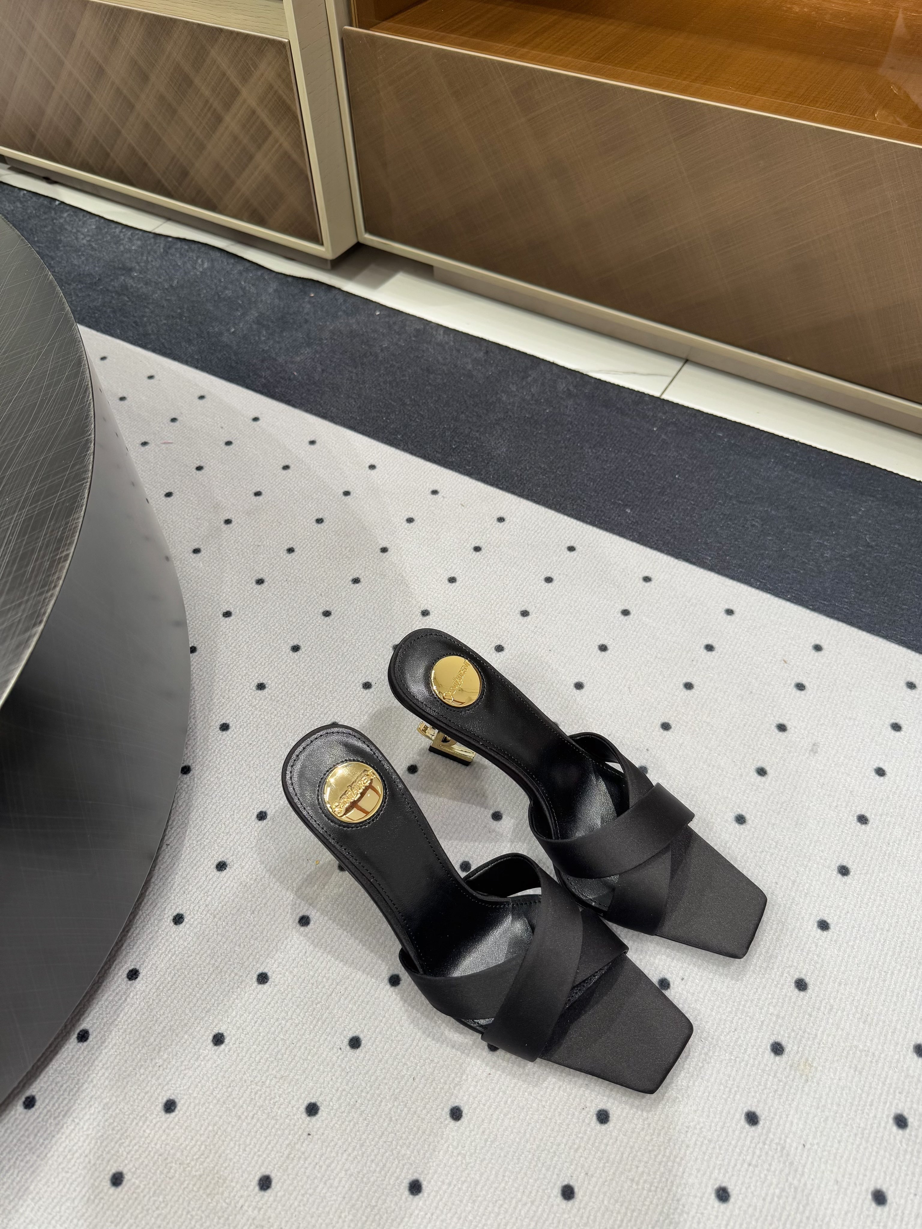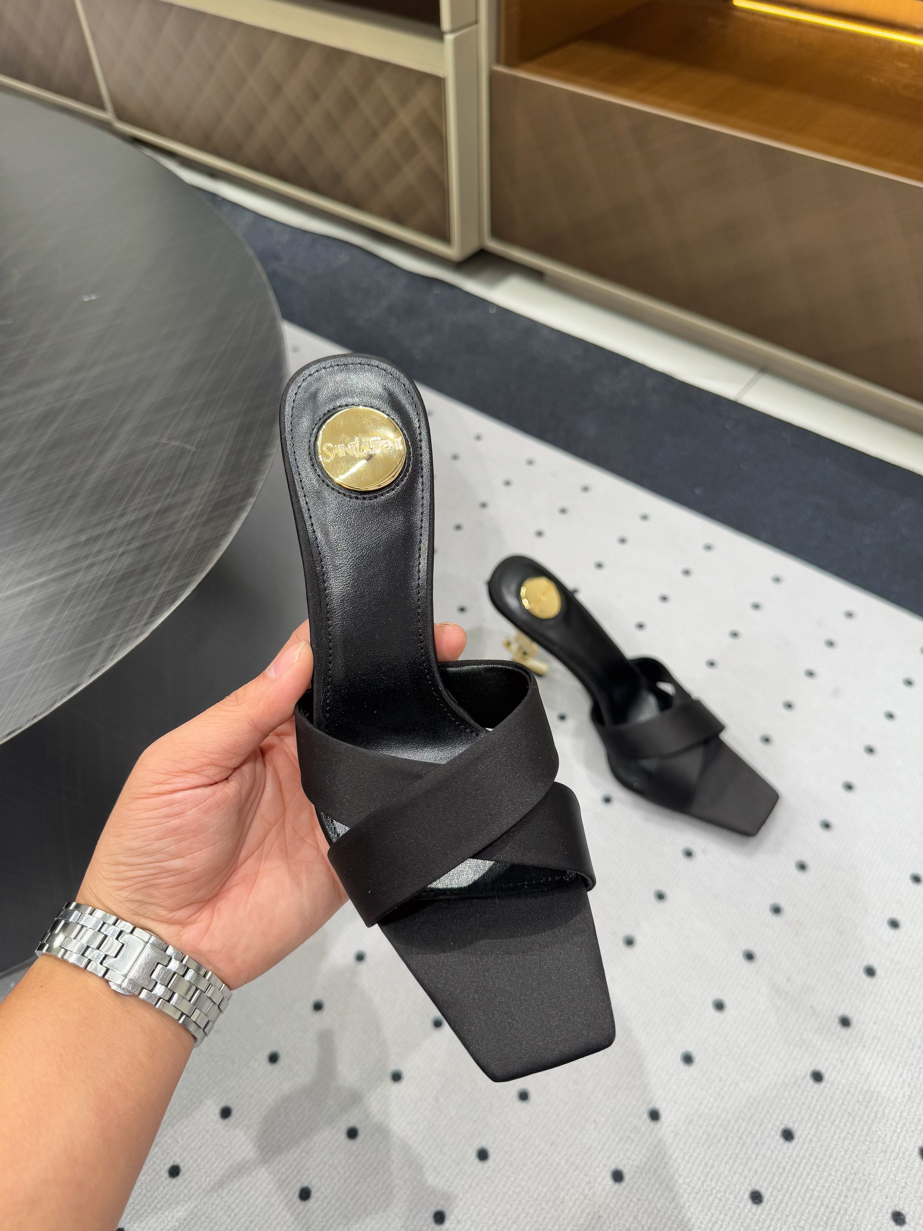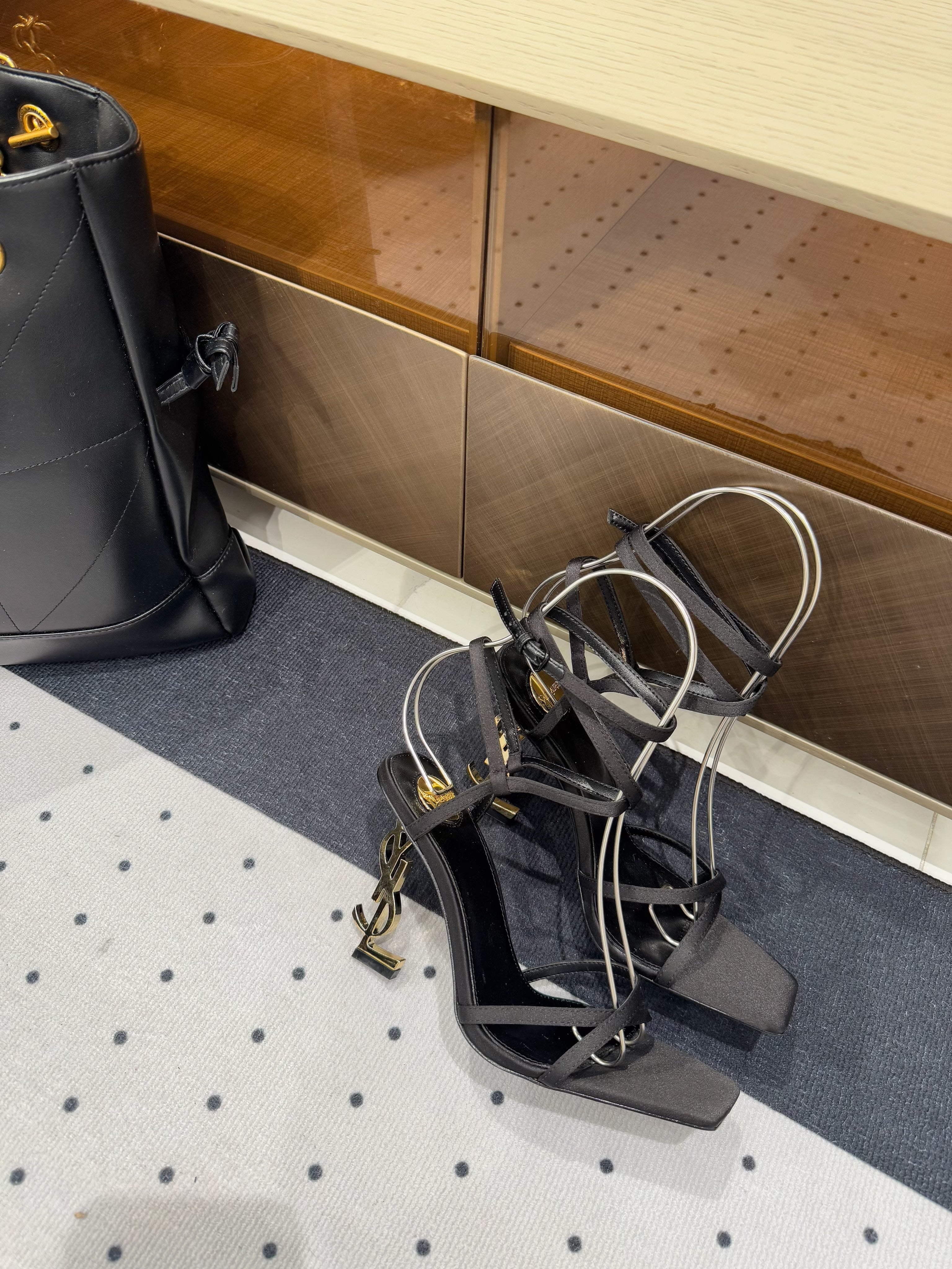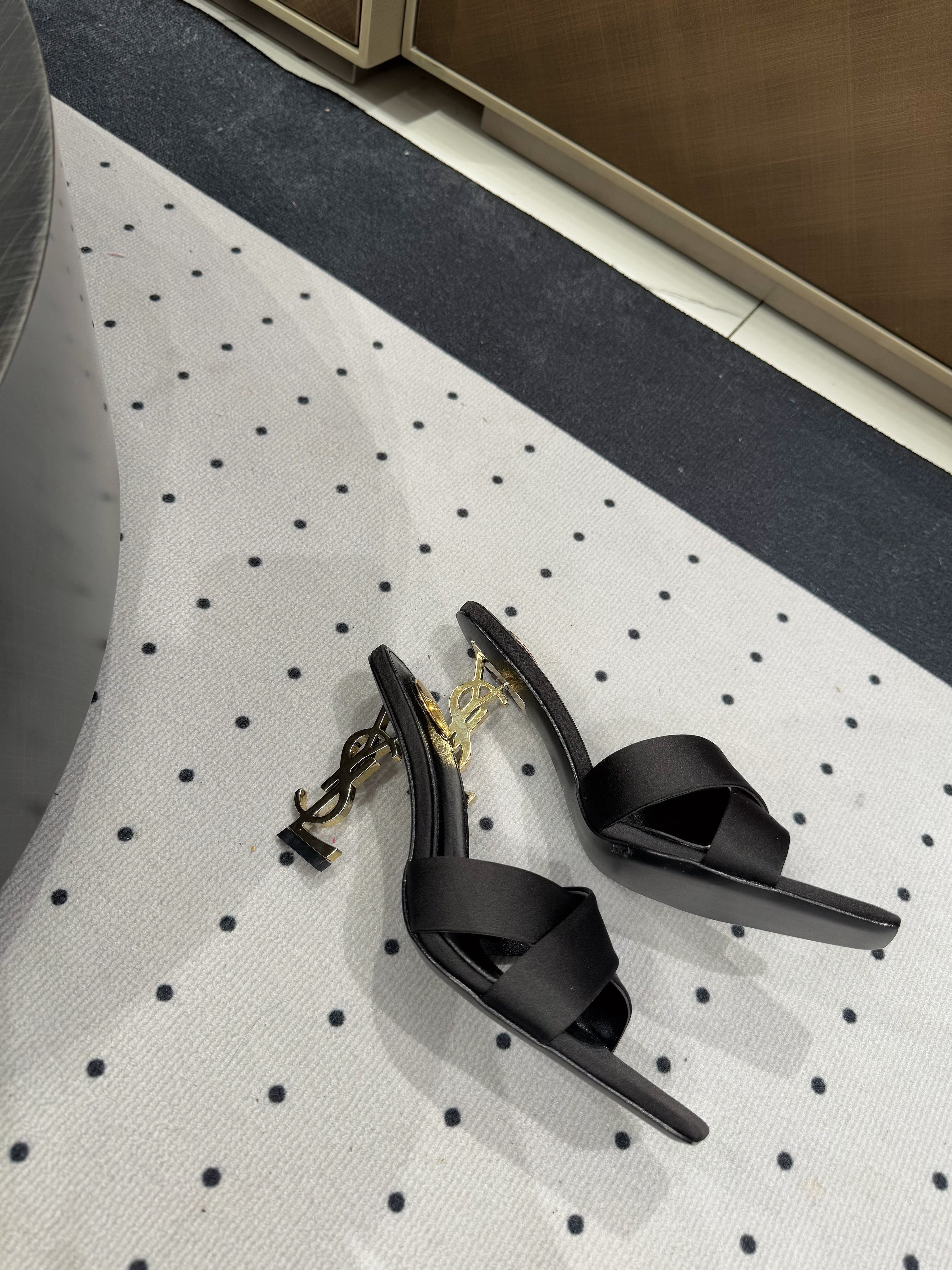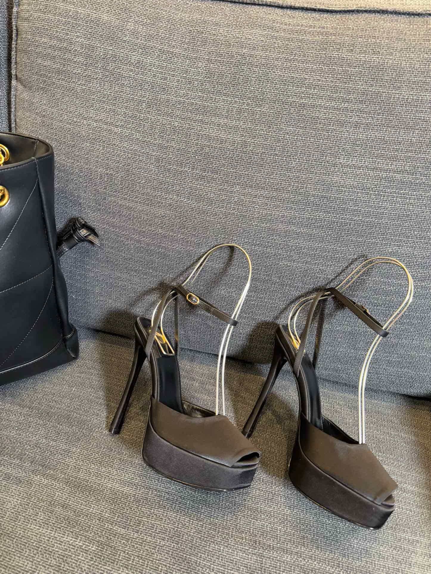 HIGH SANDAL ATTACHED GEM IN BLACK SILK