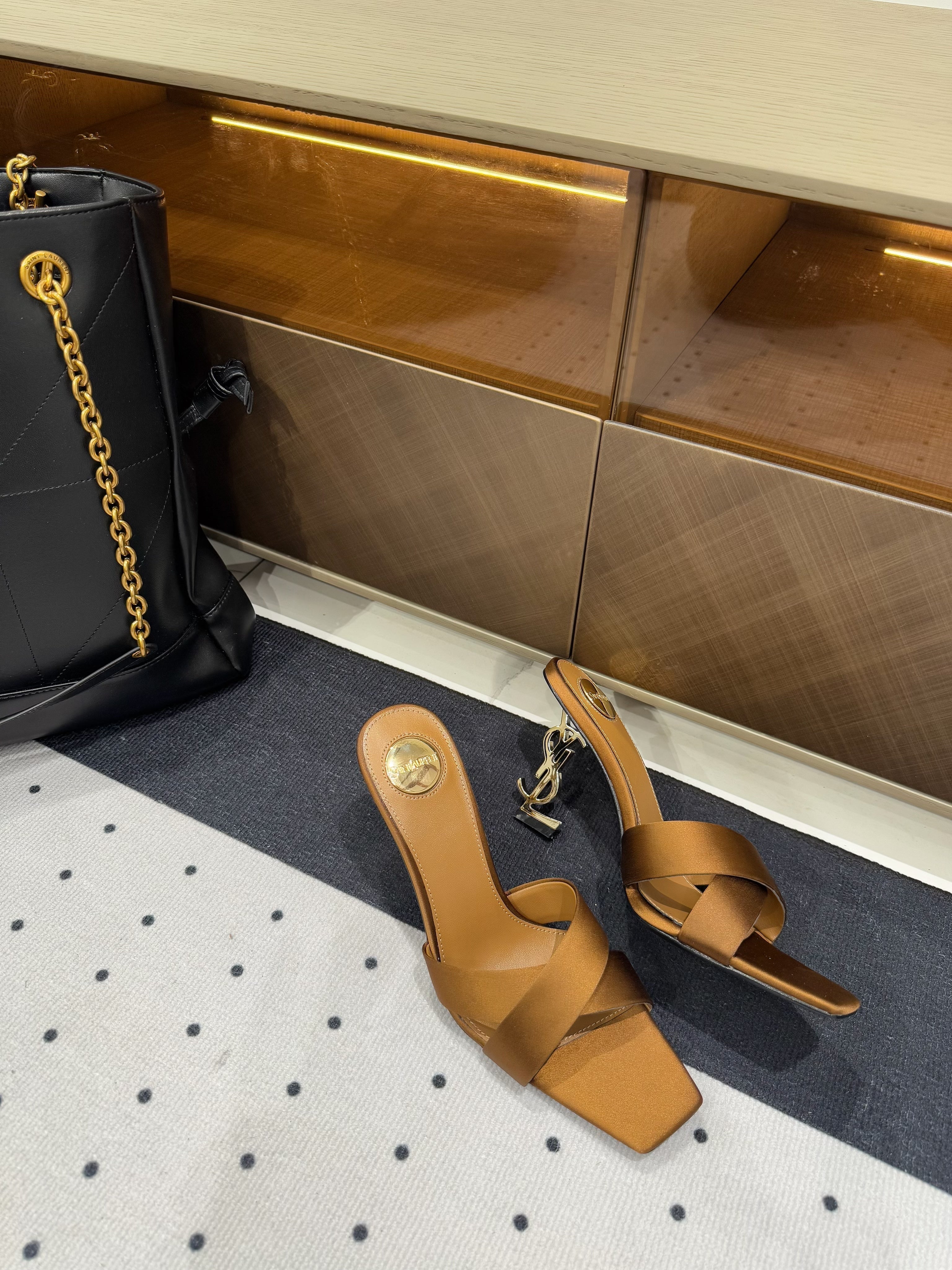SATIN OPYUM HIGH SANDALS GOLDEN BROWN