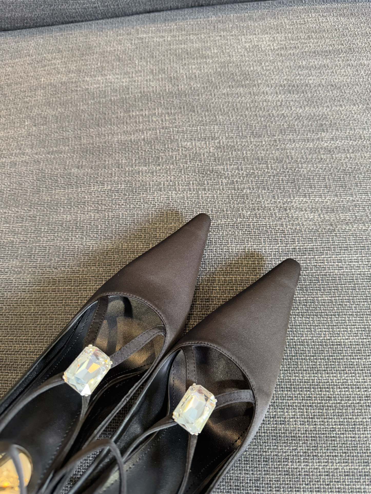 HARLOW PUMPS IN BLACK SATIN CREPE AND CRYSTALS