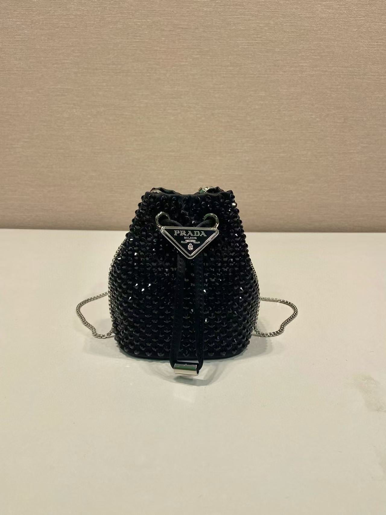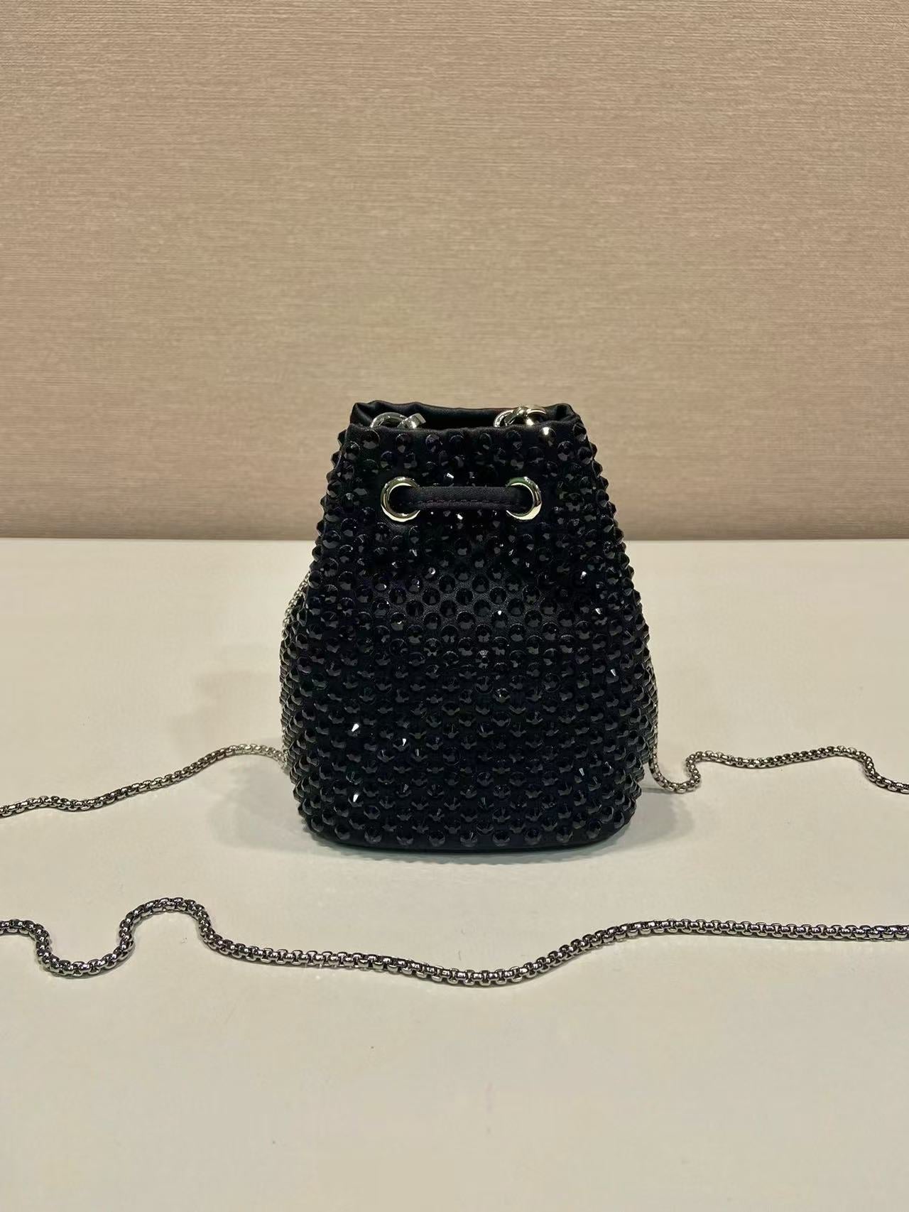 MINI FLAP BAG 11 IN BLACK DUCHESSE FABRIC ATTACHED FULL CRYSTALS SILVER CHAIN