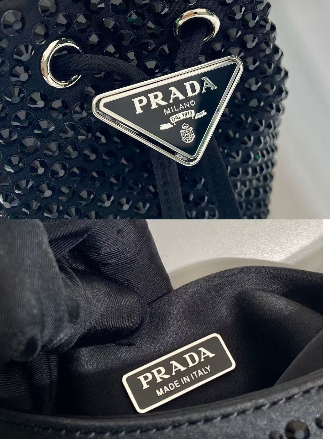 BUCKET BAG 19 IN BLACK RE-NYLON AND CALFSKIN HANDLE