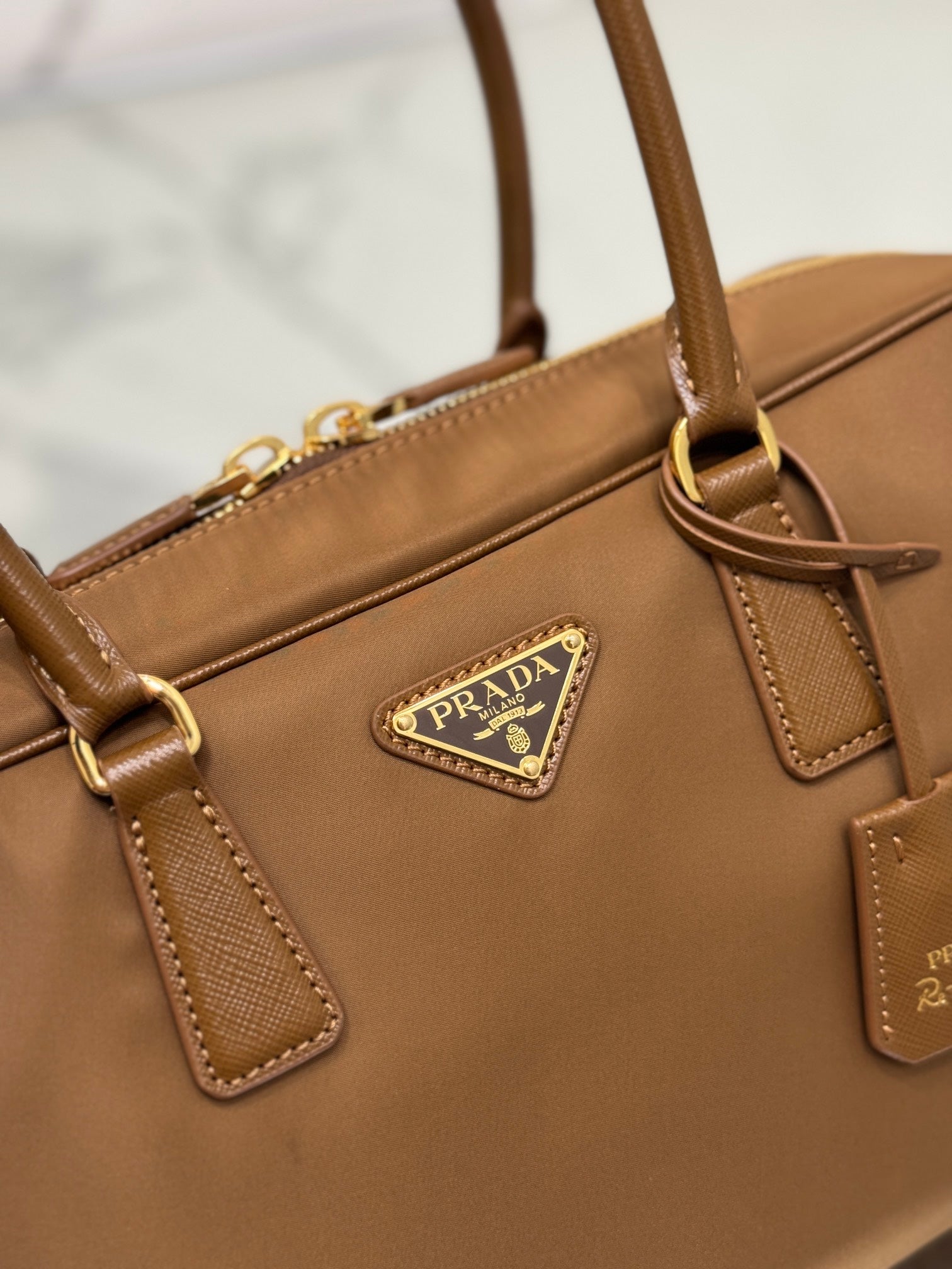 TOTE BAG 38 IN BLACK RE-NYLON AND SAFFIANO LEATHER TRIM