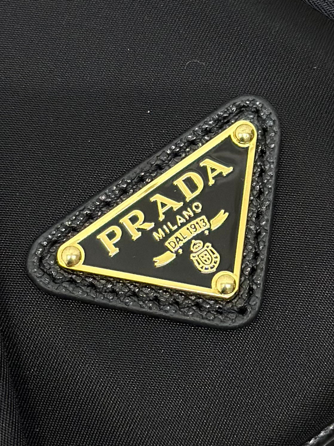 TRIANGLE LOGO CROSSBODY BAG 25 IN BLACK RE-NYLON AND SAFFIANO LEATHER TRIM