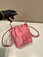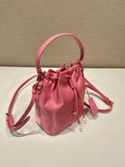 BUCKET BAG 19 IN CANDY PINK RE-NYLON AND SAFFIANO LEATHER HANDLE