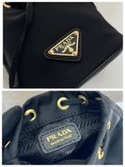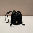 MINI BUCKET BAG 10 IN BLACK RE-NYLON AND SAFFIANO LEATHER STRAP