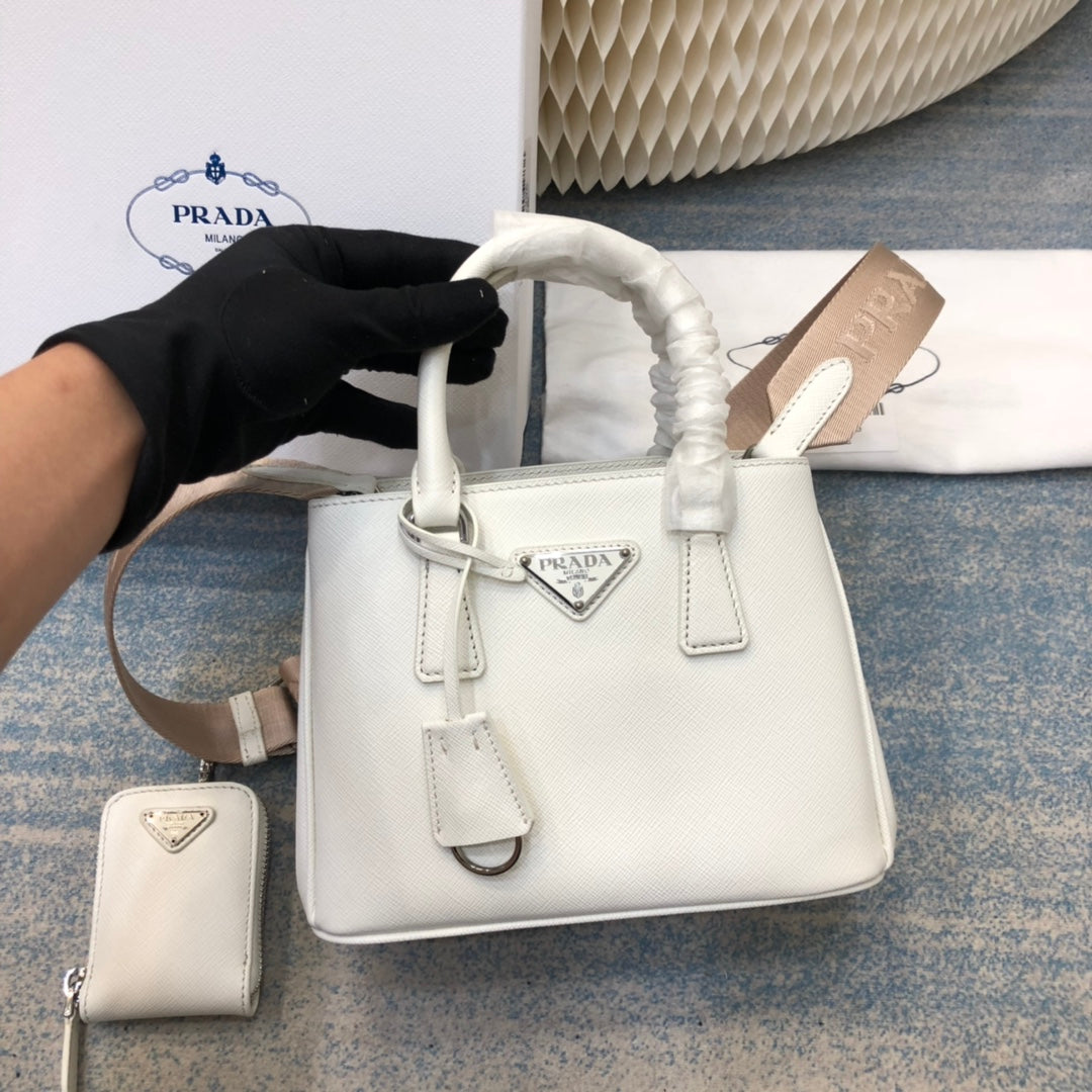 PRA MINI 23 BAG IN WHITE SAFFIANO LEATHER