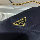 SMALL QUILTED FLAP BAG 18 IN BLACK RE-NYLON FABRIC GOLD CHAIN