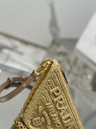 TRIANGLE BAG 26 IN BEIGE WOVEN RAFFIA GOLD CHAIN