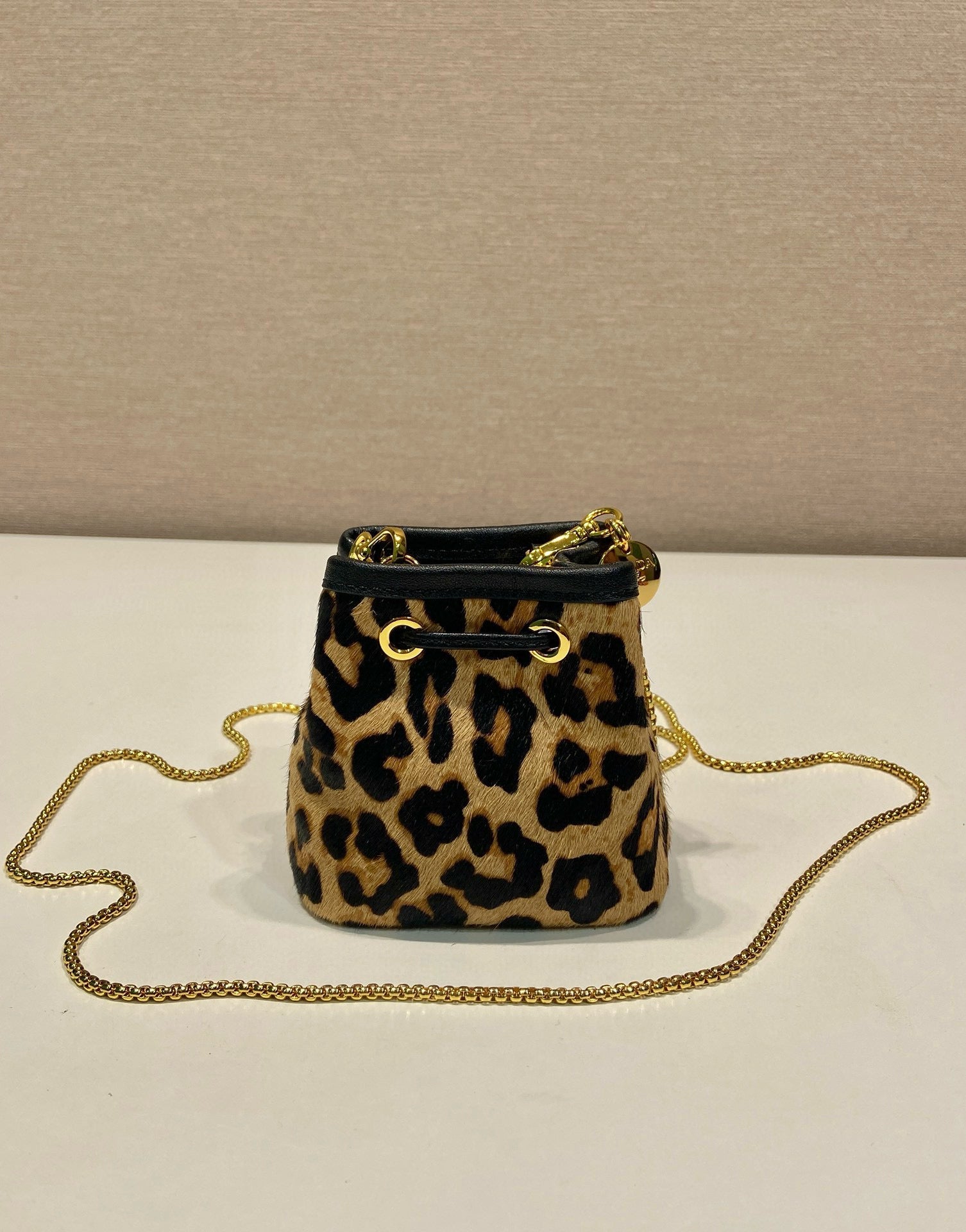 Pra Mini Drawstring Pouch Black Brown Calfskin