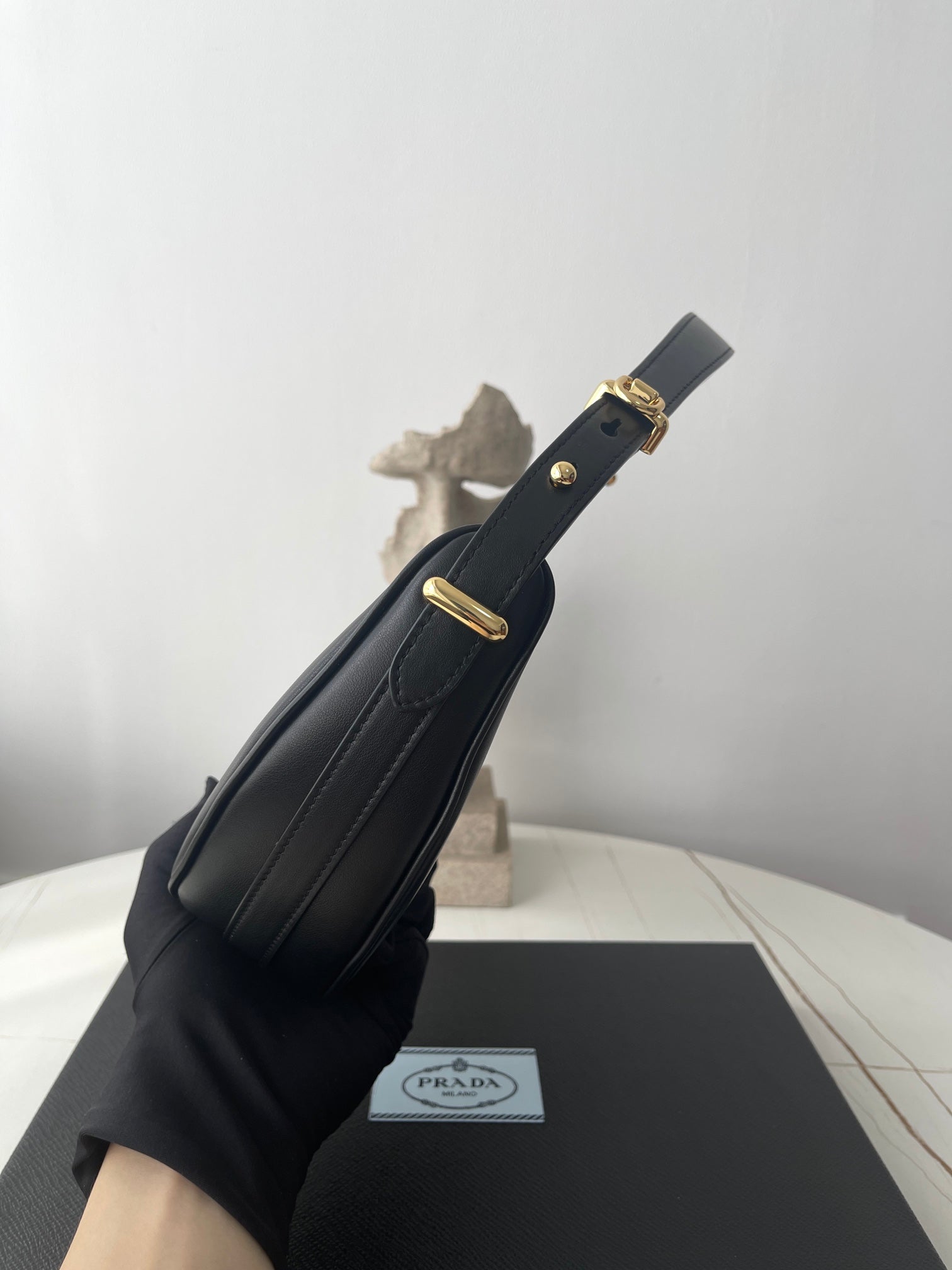 PRA ARQUÉ 22 SHOULDER BAG IN BLACK LEATHER