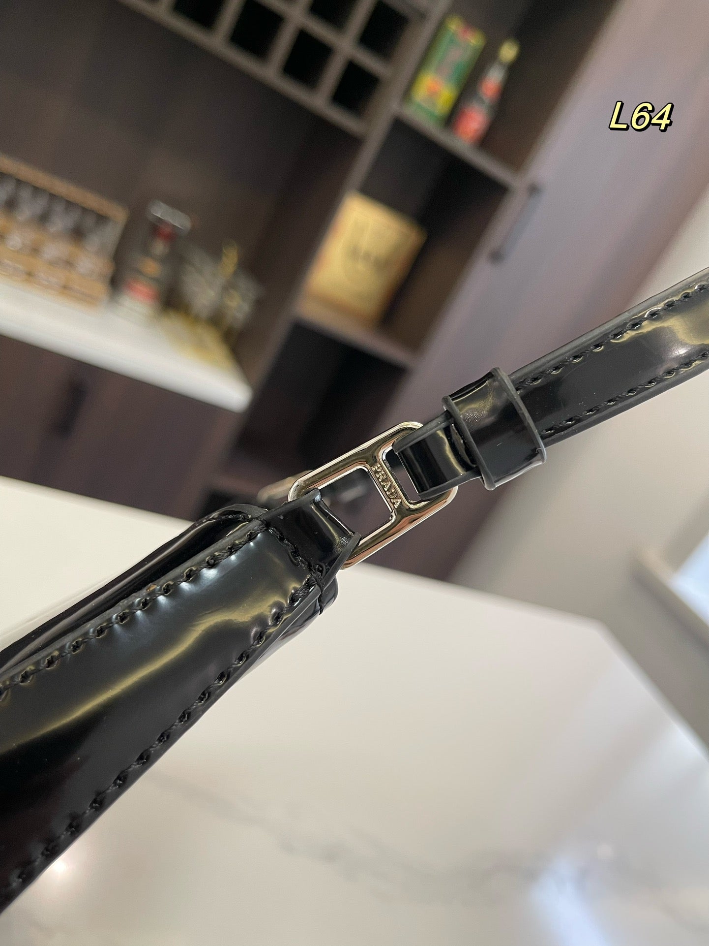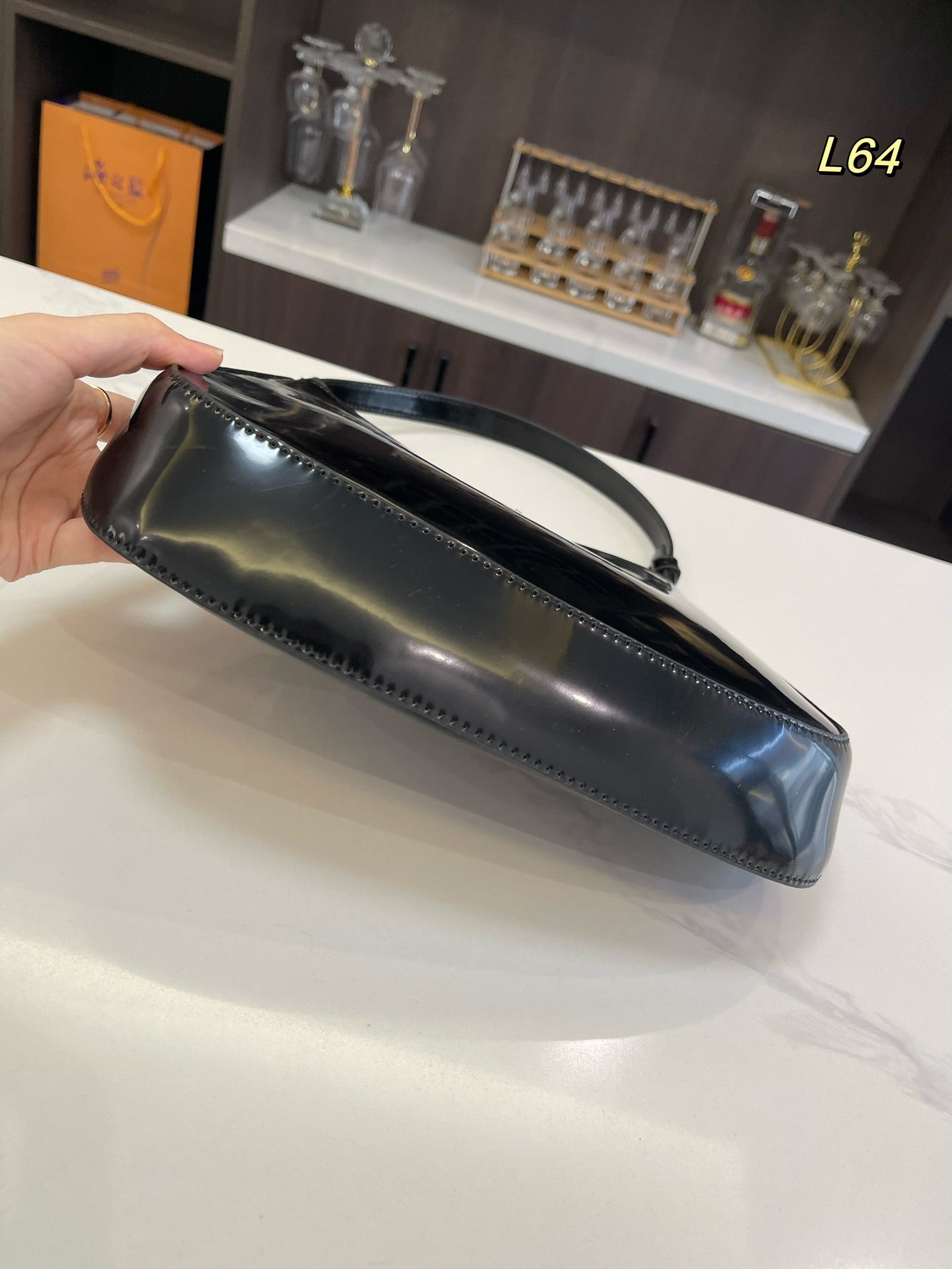 MINI HAND BAG 11 WITH GOLD STRAP IN BLACK PATENT CALFSKIN
