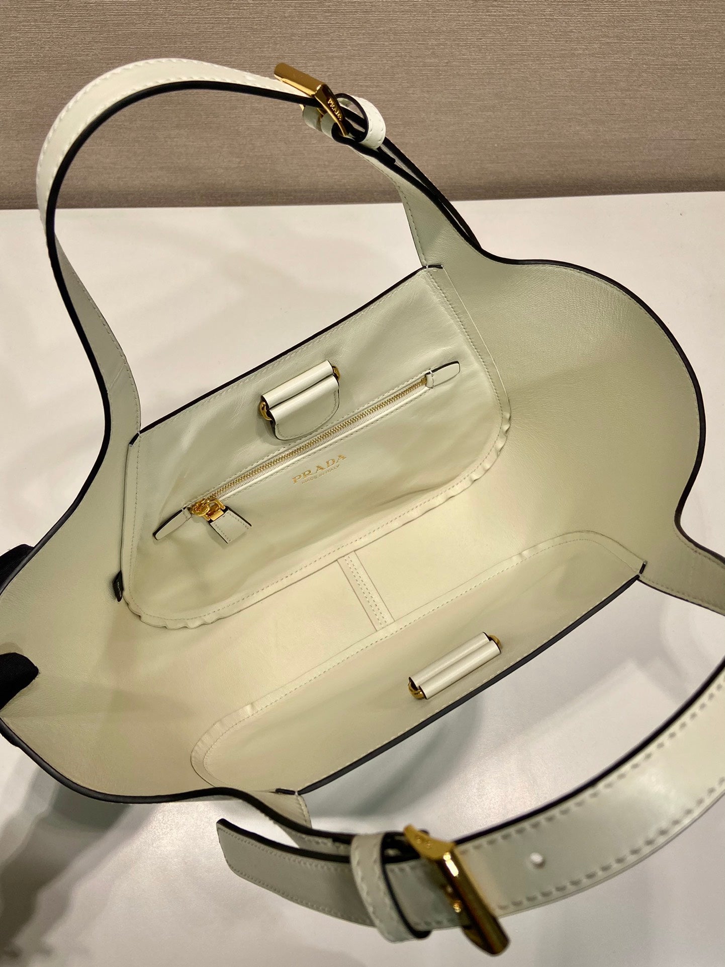 TOTE BAG WITH BELT 32 IN WHITE IMPORTED CALFSKIN