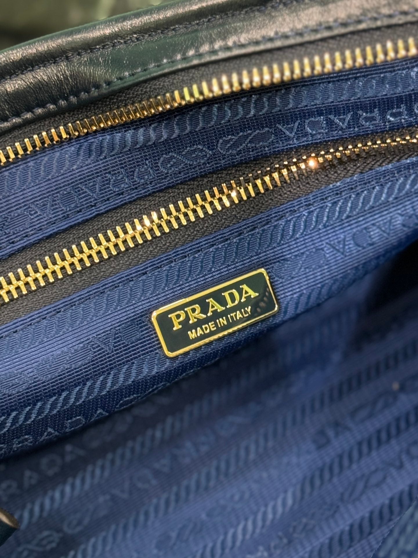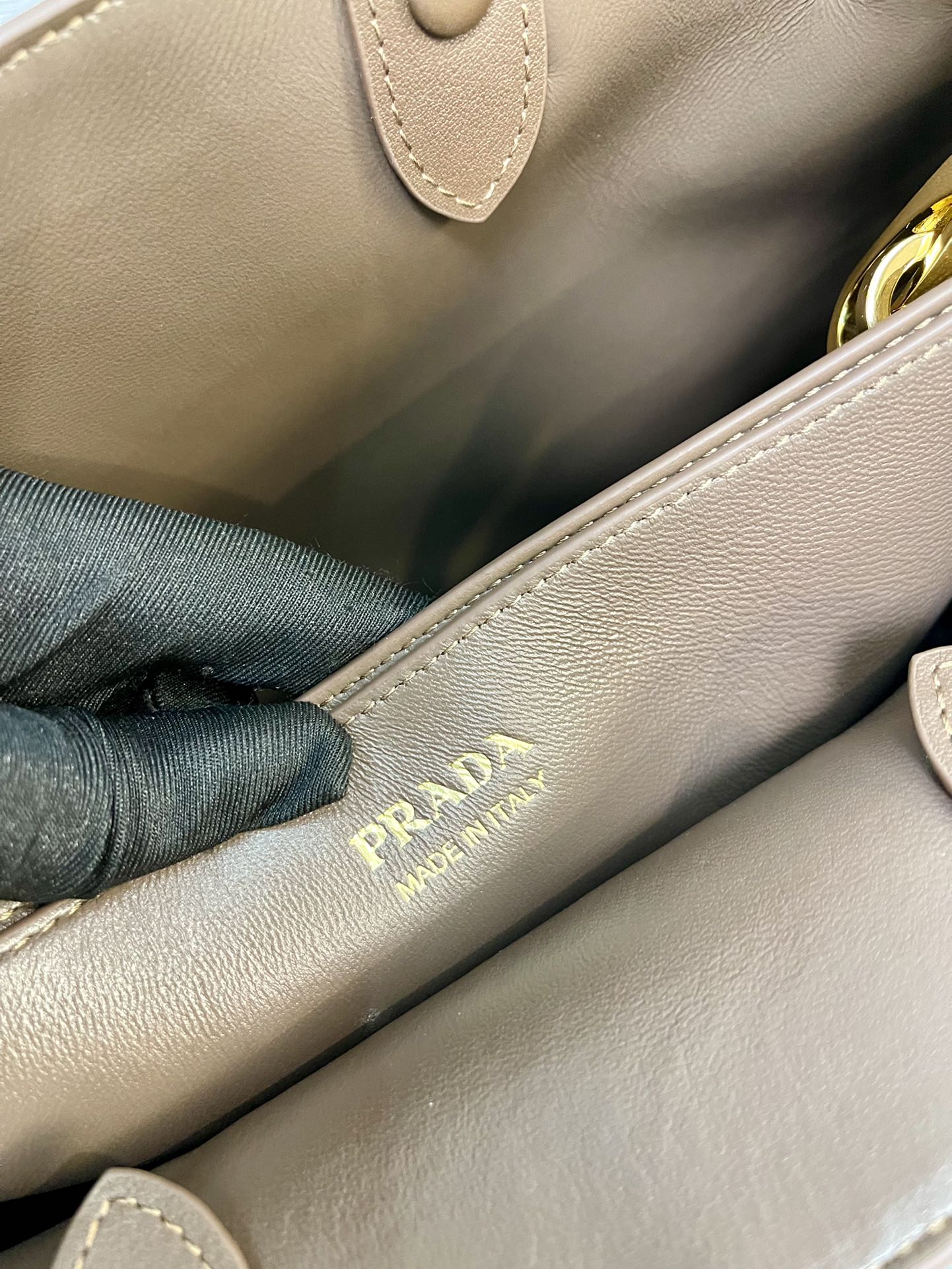MESSENGER BAG 20 IN KHAKI GREEN RE-NYLON AND BROWN CALFSKIN TRIM