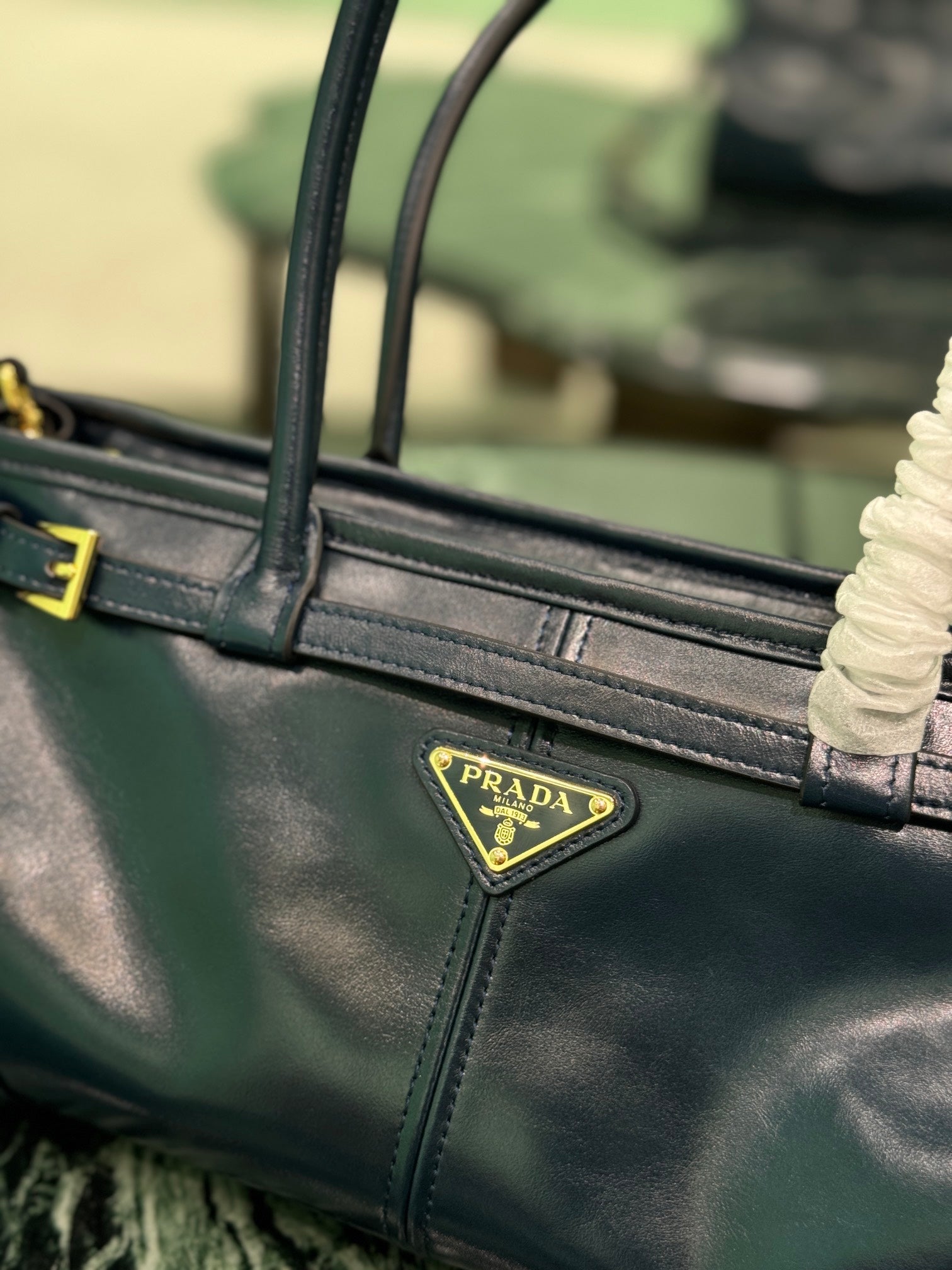 TOTE BAG WITH BELT 42 IN BLACK OIL WAX LAMBSKIN GOLD HARDWARE