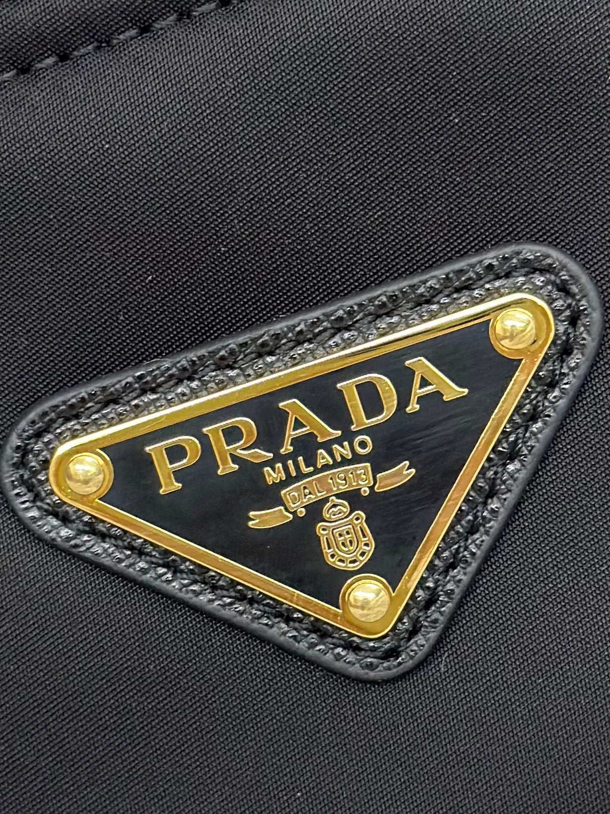 SHOULDER BAG 32 IN BLACK RE-NYLON TRIANGLE LOGO