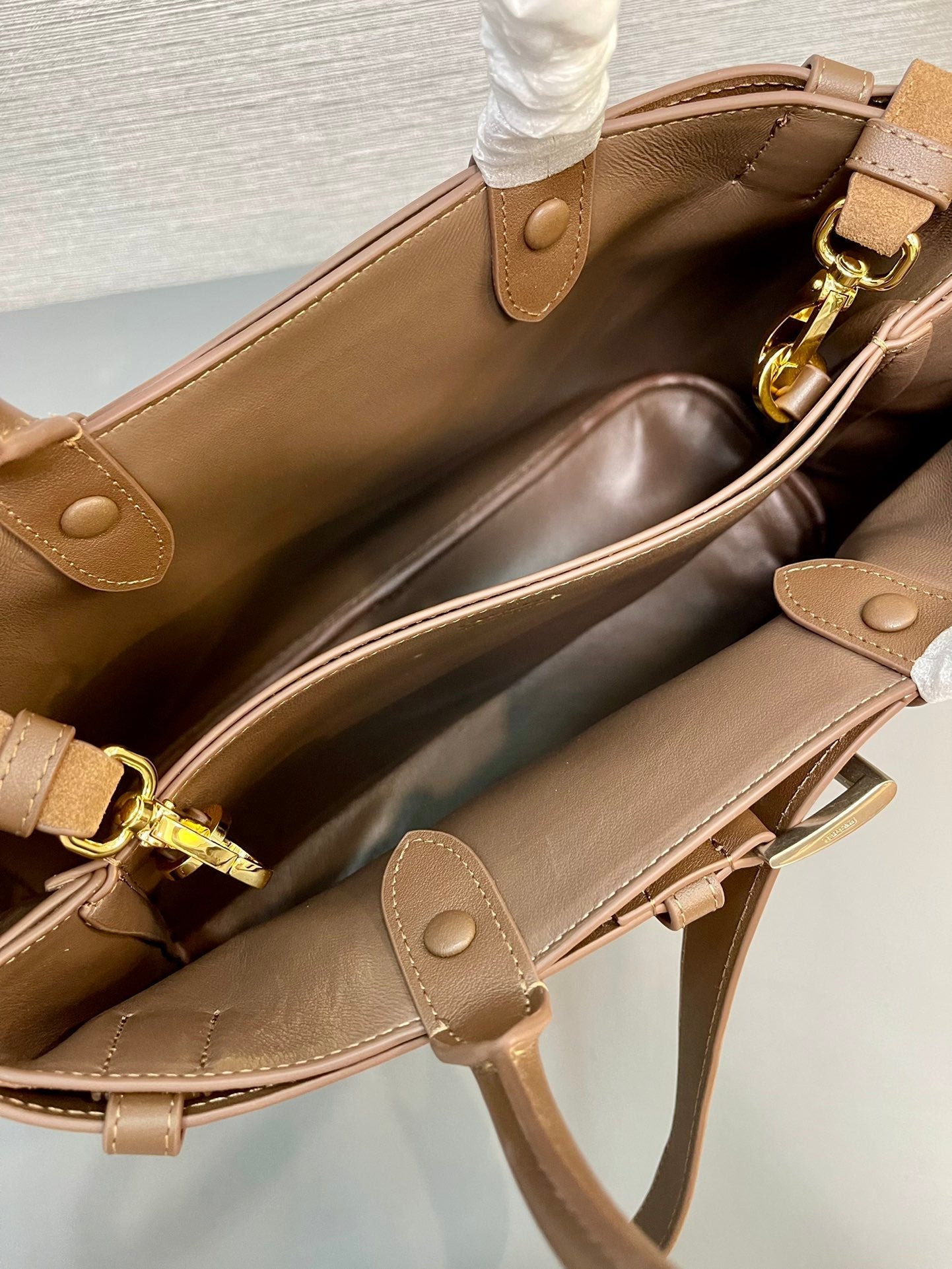 TOTE BAG 28 IN CINNAMON BROWN SHEEPSKIN GOLD LOGO