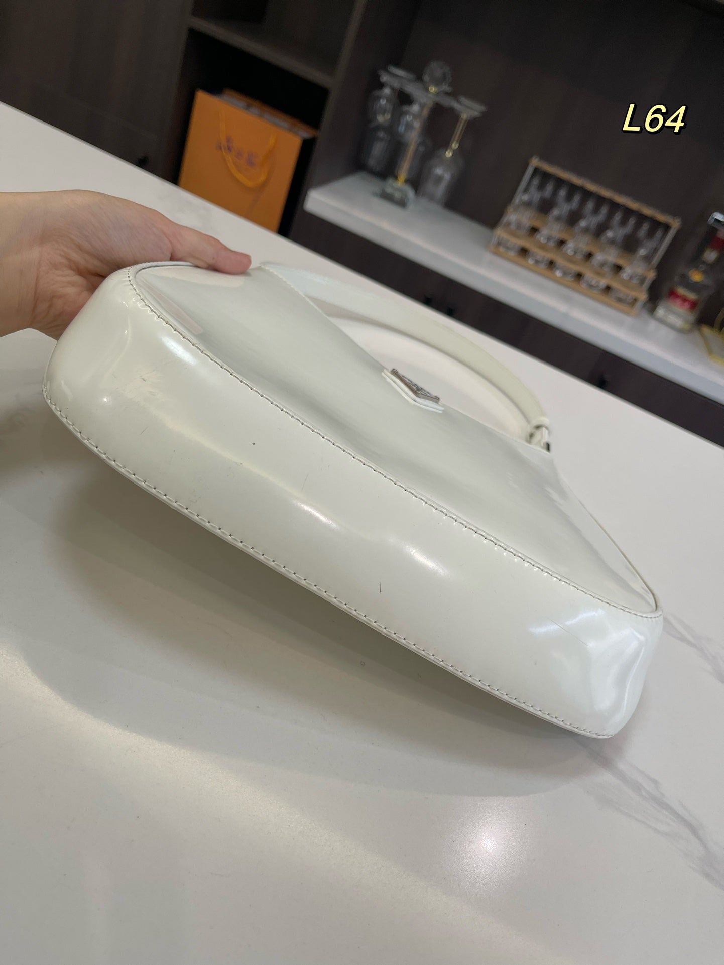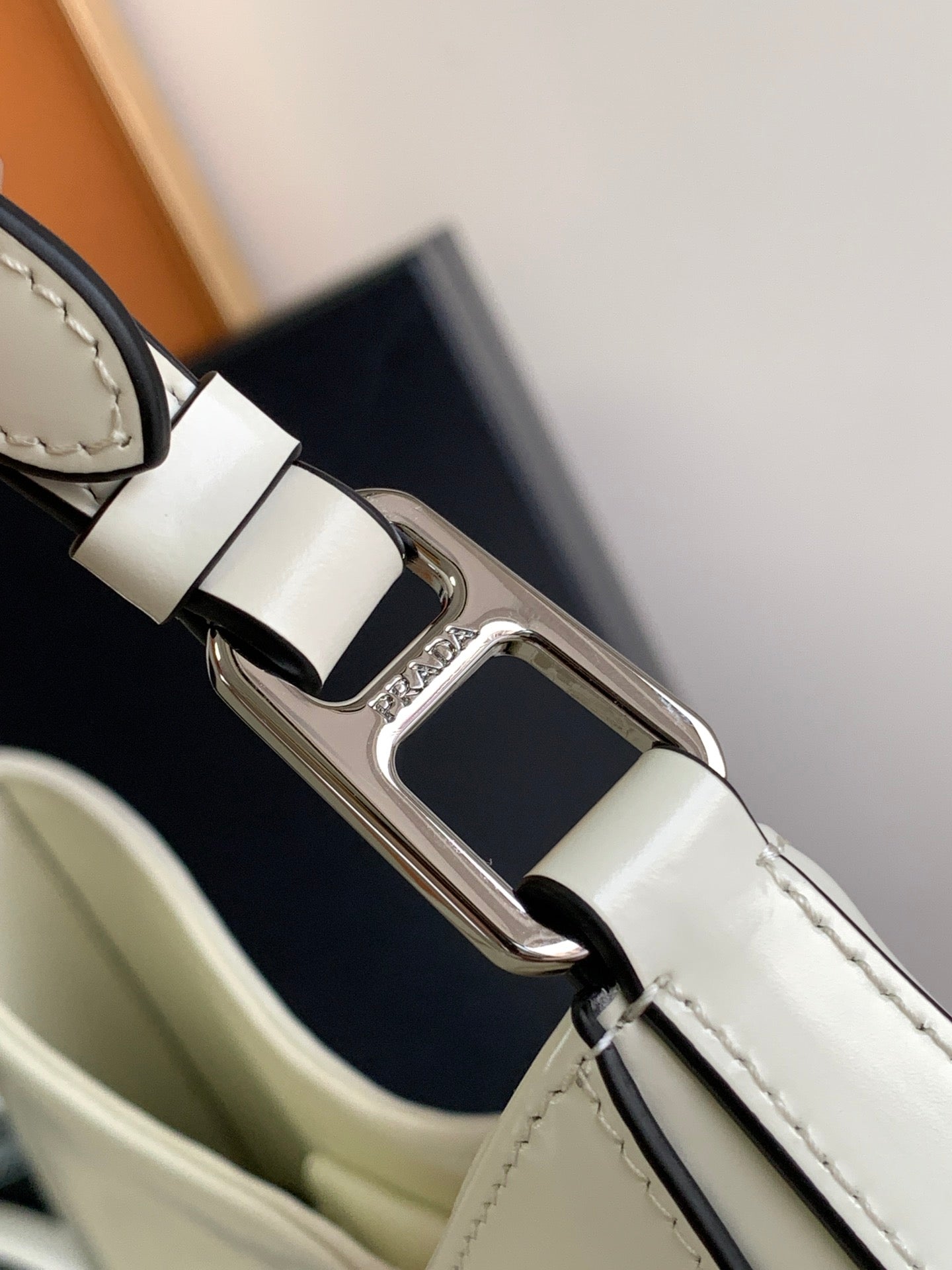 PRA 23 MOON PADDED BAG WHITE CALFSKIN WITH STRAP