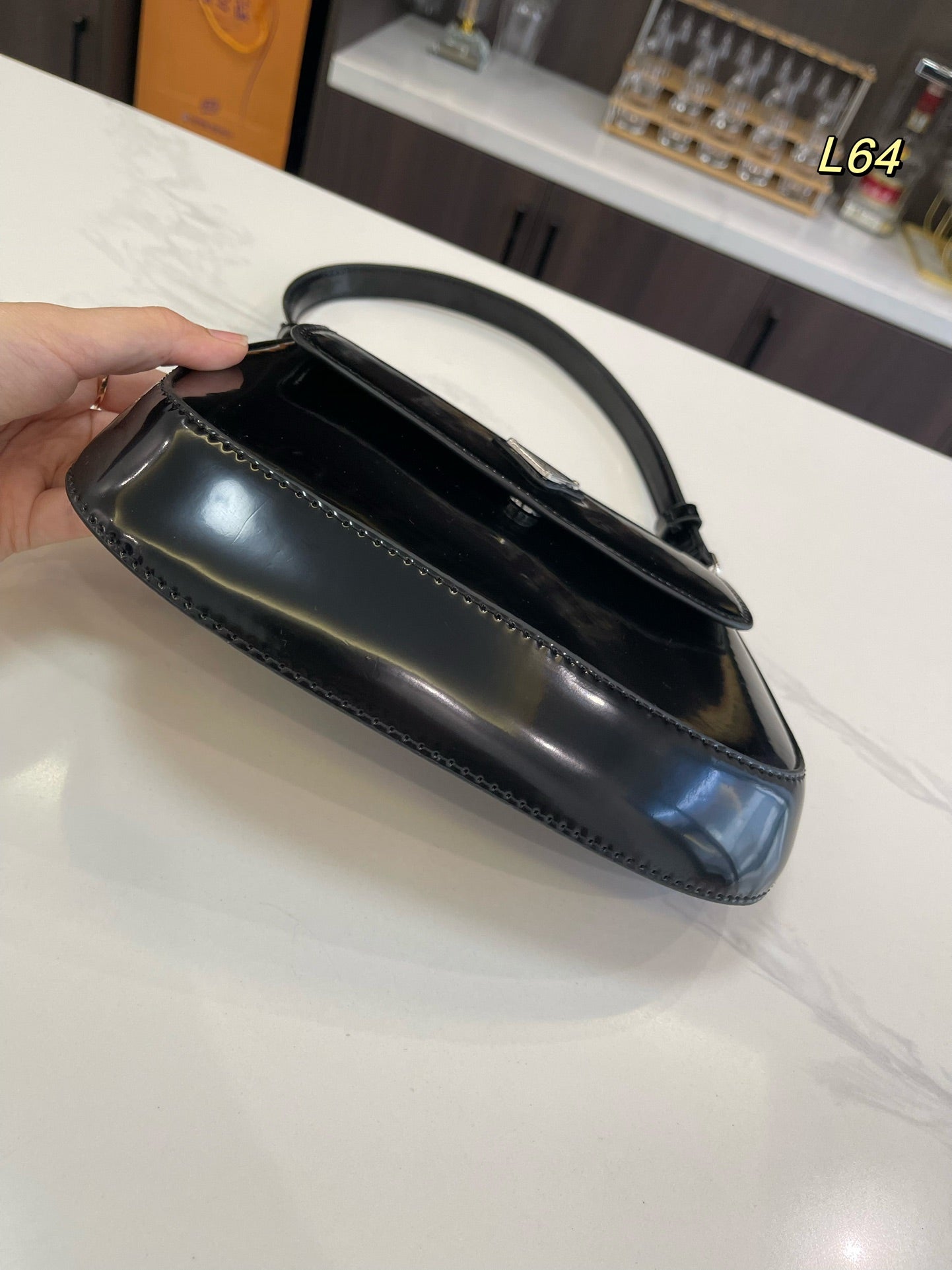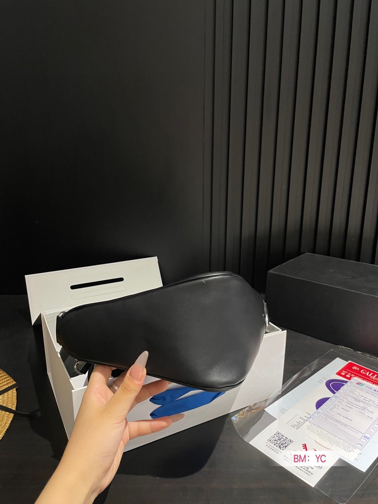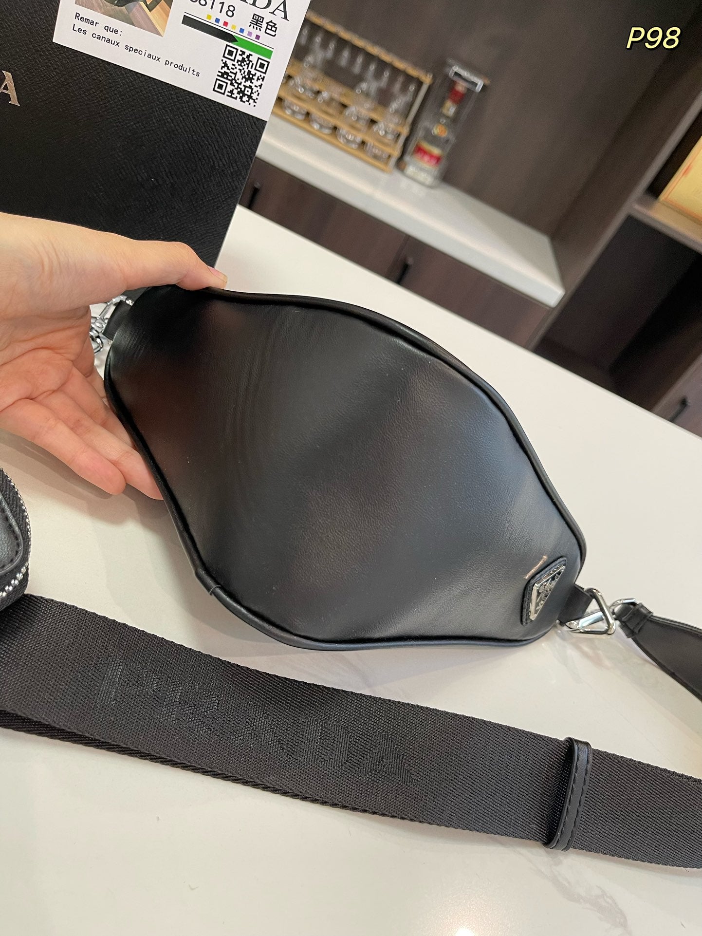 PRA 22 MOON PADDED BAG IN BLACK CALFSKIN WITH STRAP