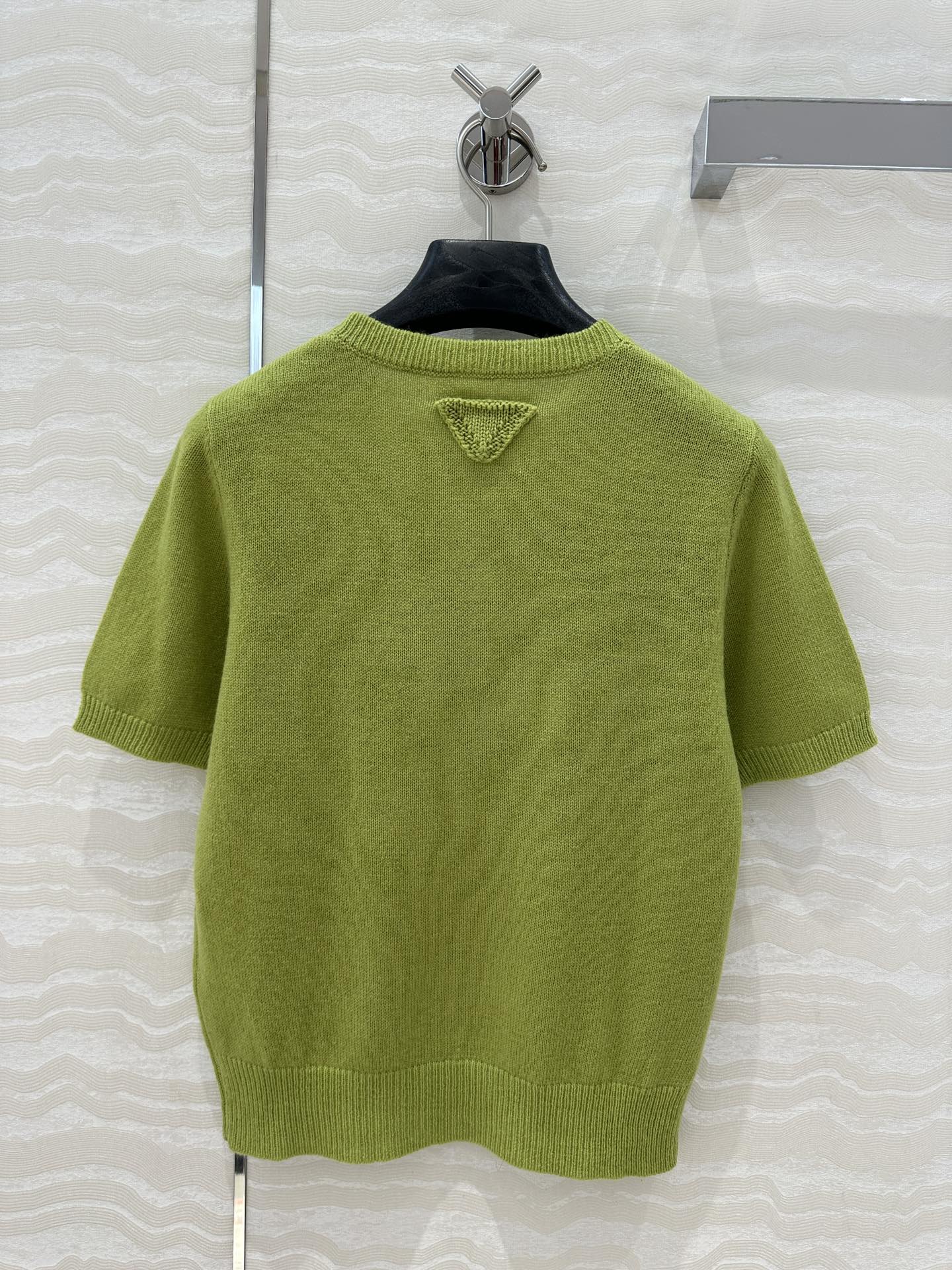 Prada Short Sleeves T-shirt Green Wool Cashmere
