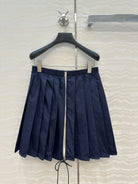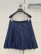 Prada Zipper Pleated Skirt Navy Blue Poliamida
