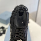 MONOLITH LACE-UP LOAFER IN BLACK GLOSSY CALFSKIN ATTACHED TRIANGLE LOGO