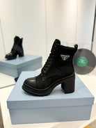 PRA BRUSHED LEATHER AND RE-NYLON LACED BOOTIES BLACK