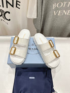 PRA CROCODILE MOTIF STRAP SLIDES SANDALS WHITE CALFSKIN