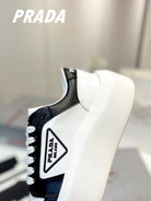 PRA DOWNTOWN THICK-SOLE SNEAKERS BLACK AND WHITE CALFSKIN