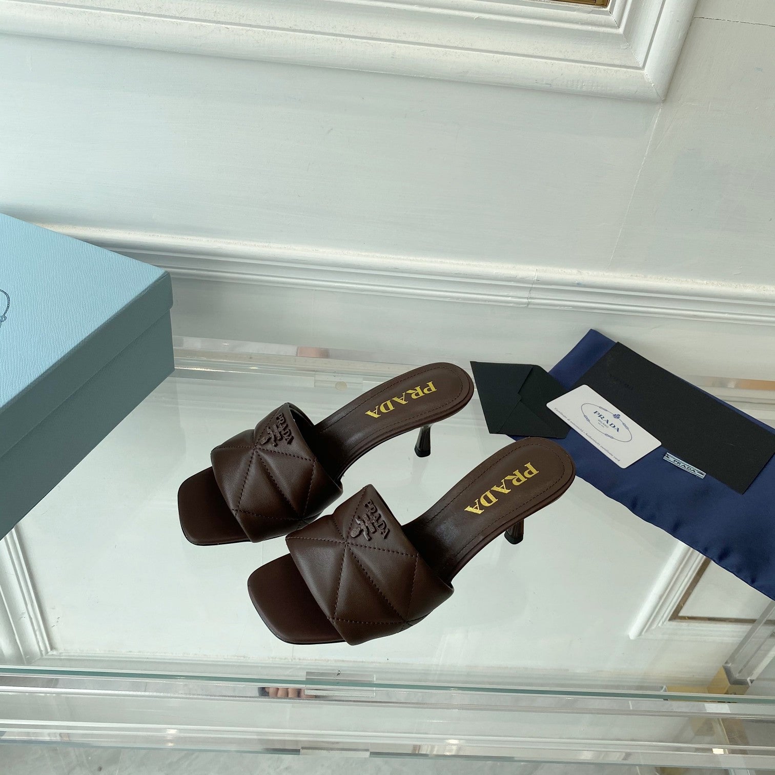 Pra Heeled Sandal 65 Pointed Sole Quilted Chocolate Leather