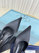 PRA POINTED TOE SLINGBACK PUMPS BLACK SATIN