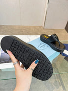 PRA SOFT PADDED NAPPA THONG WEDGE SANDALS BLACK LAMBSKIN