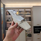 PRA SQUARE TOE MULES WHITE CALFSKIN WITH CHAIN