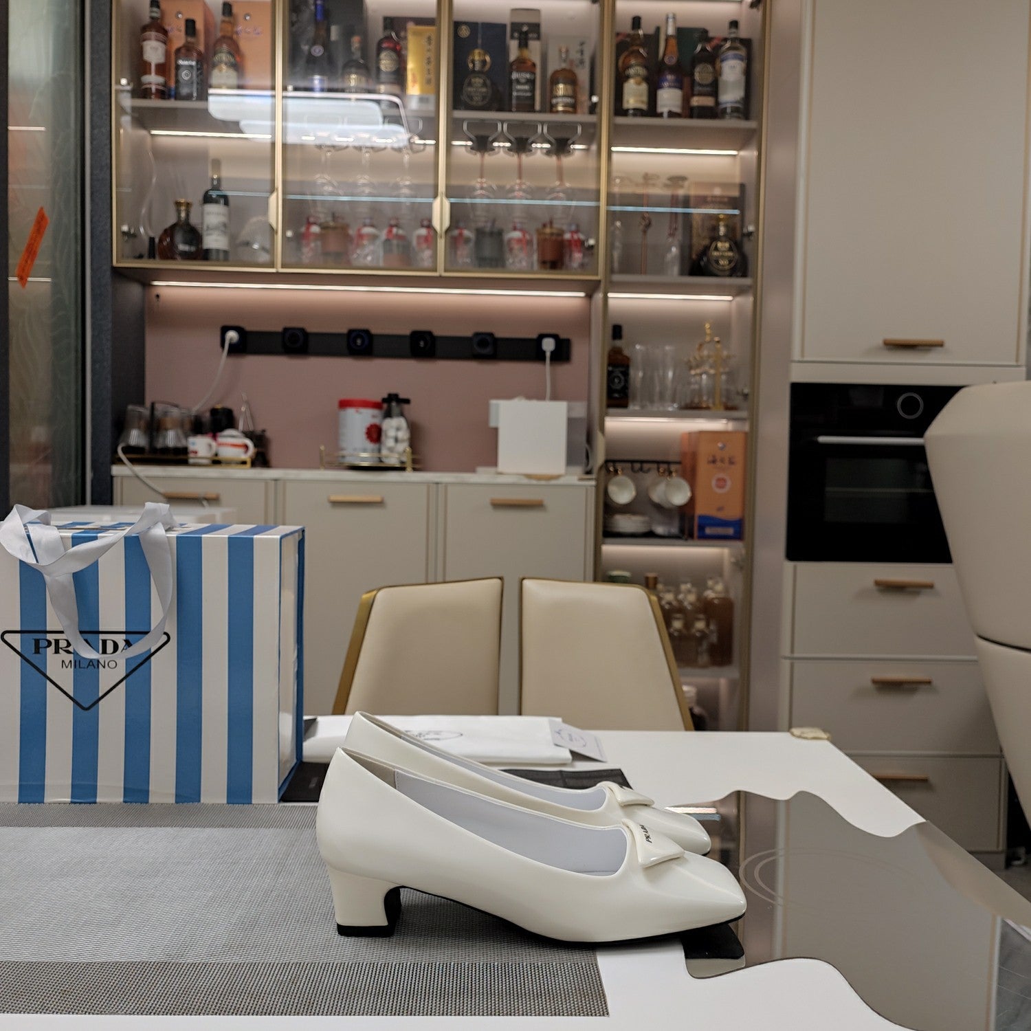 TRIANGLE LOGO PUMPS IN WHITE GLOSSY CALFSKIN