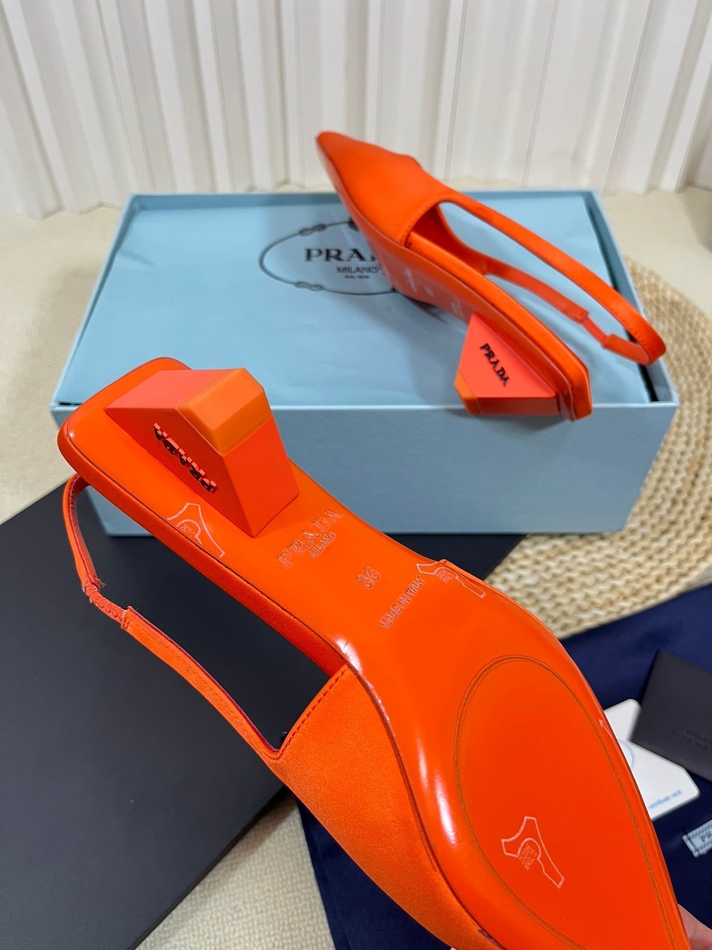 PRA SQUARE TOE SLINGBACK PUMPS BRIGHT ORANGE SATIN