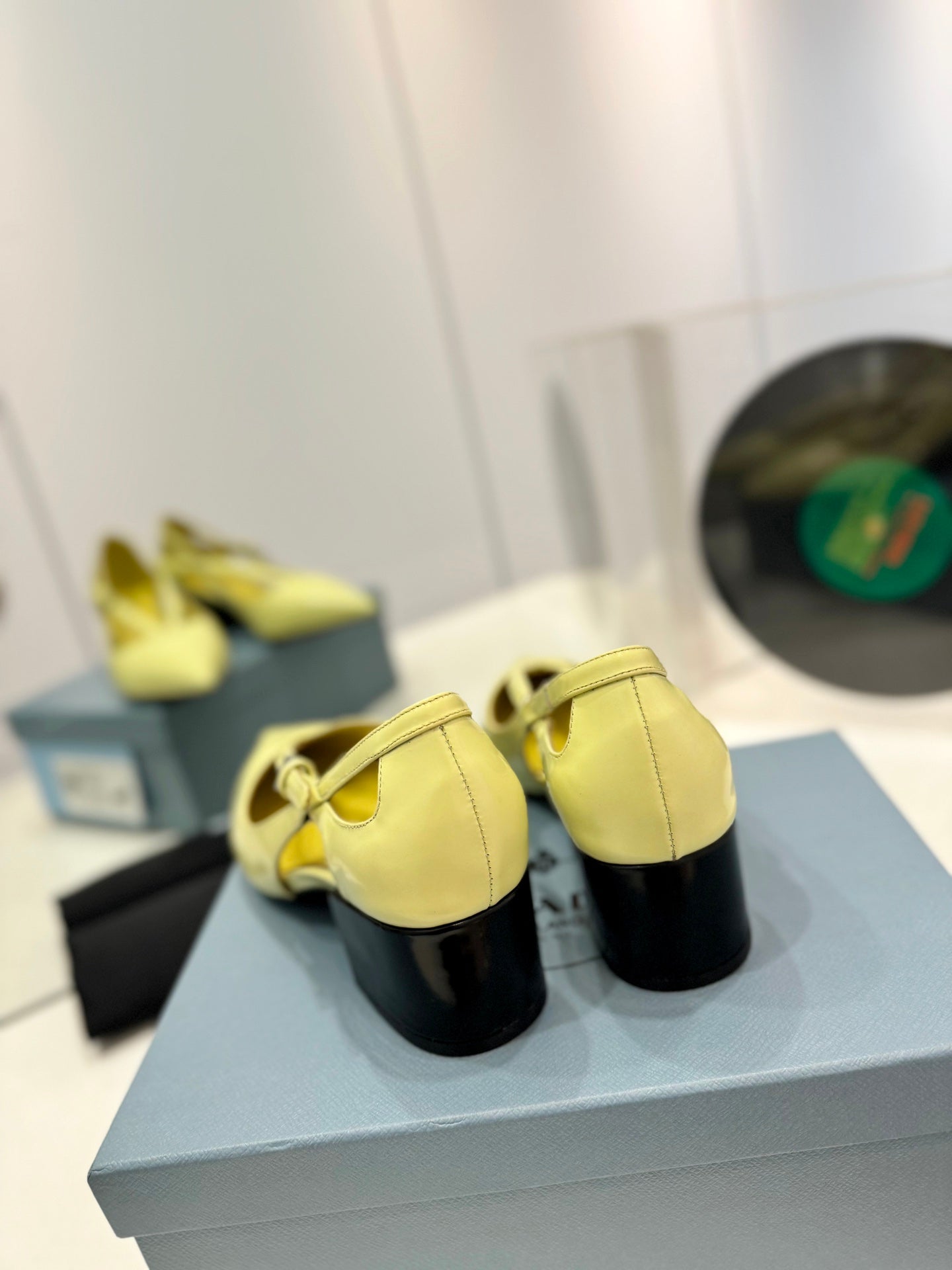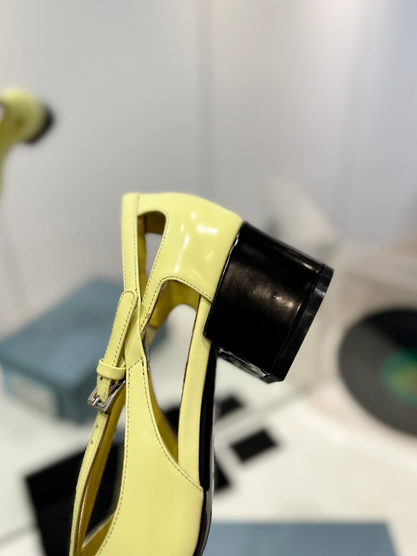PRA STRAP CUT-OUT PUMPS PASTEL YELLOW CALFSKIN