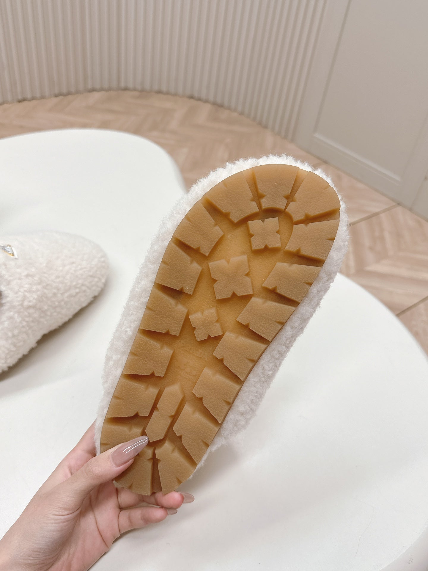 MULES ATTACHED TRIANGLE LOGO IN WHITE SHEARLING