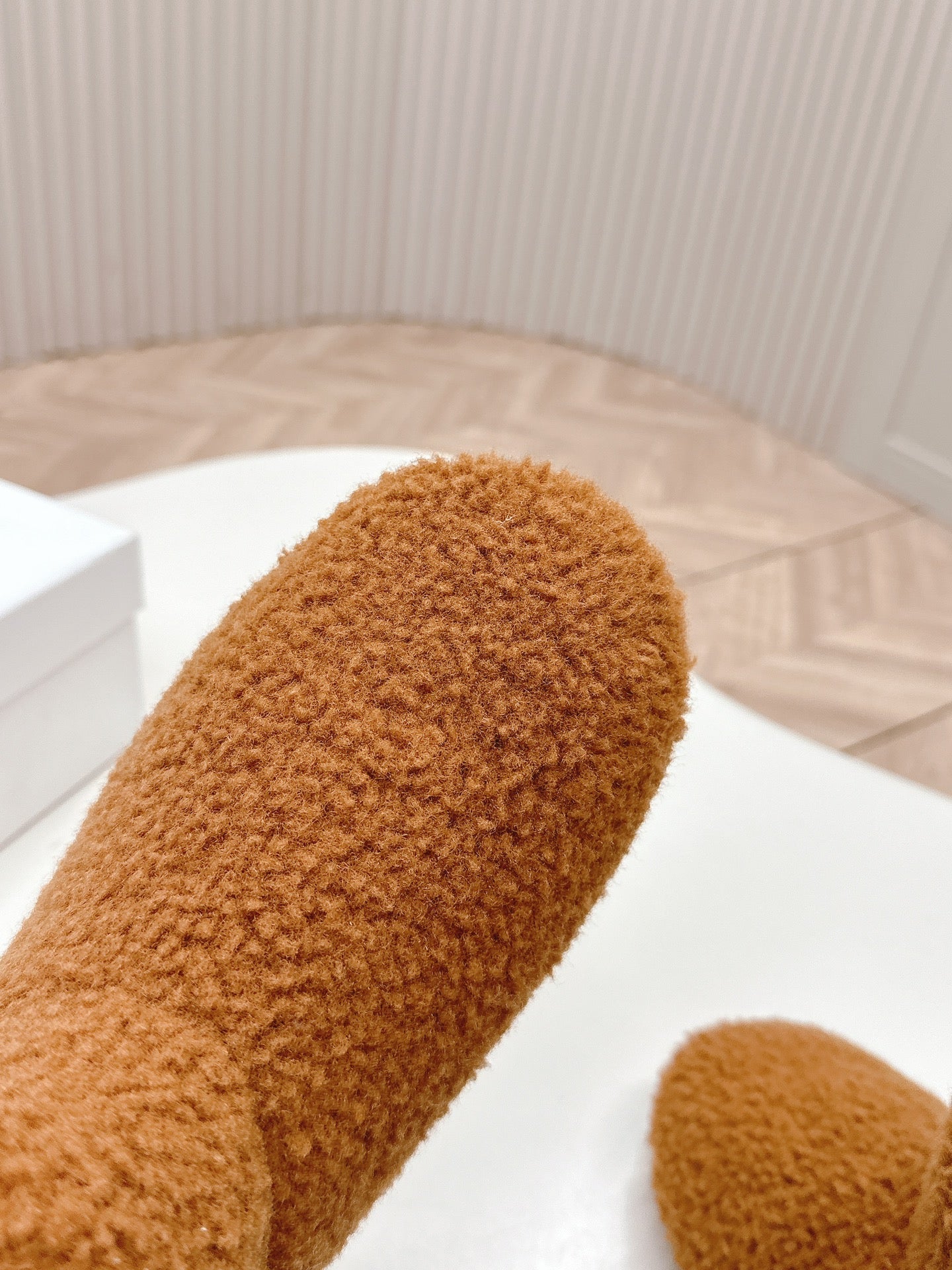 MULES ATTACHED TRIANGLE LOGO IN WOOD BROWN SHEARLING