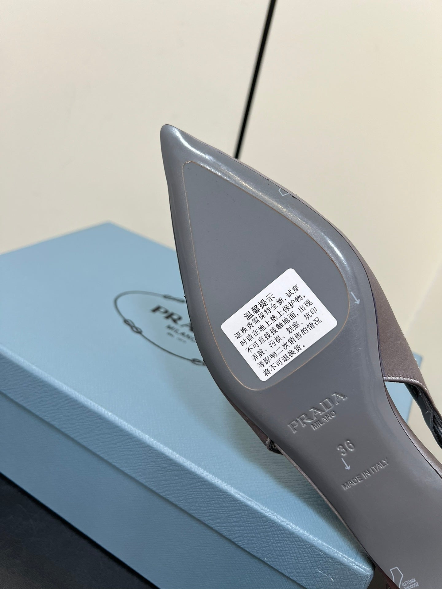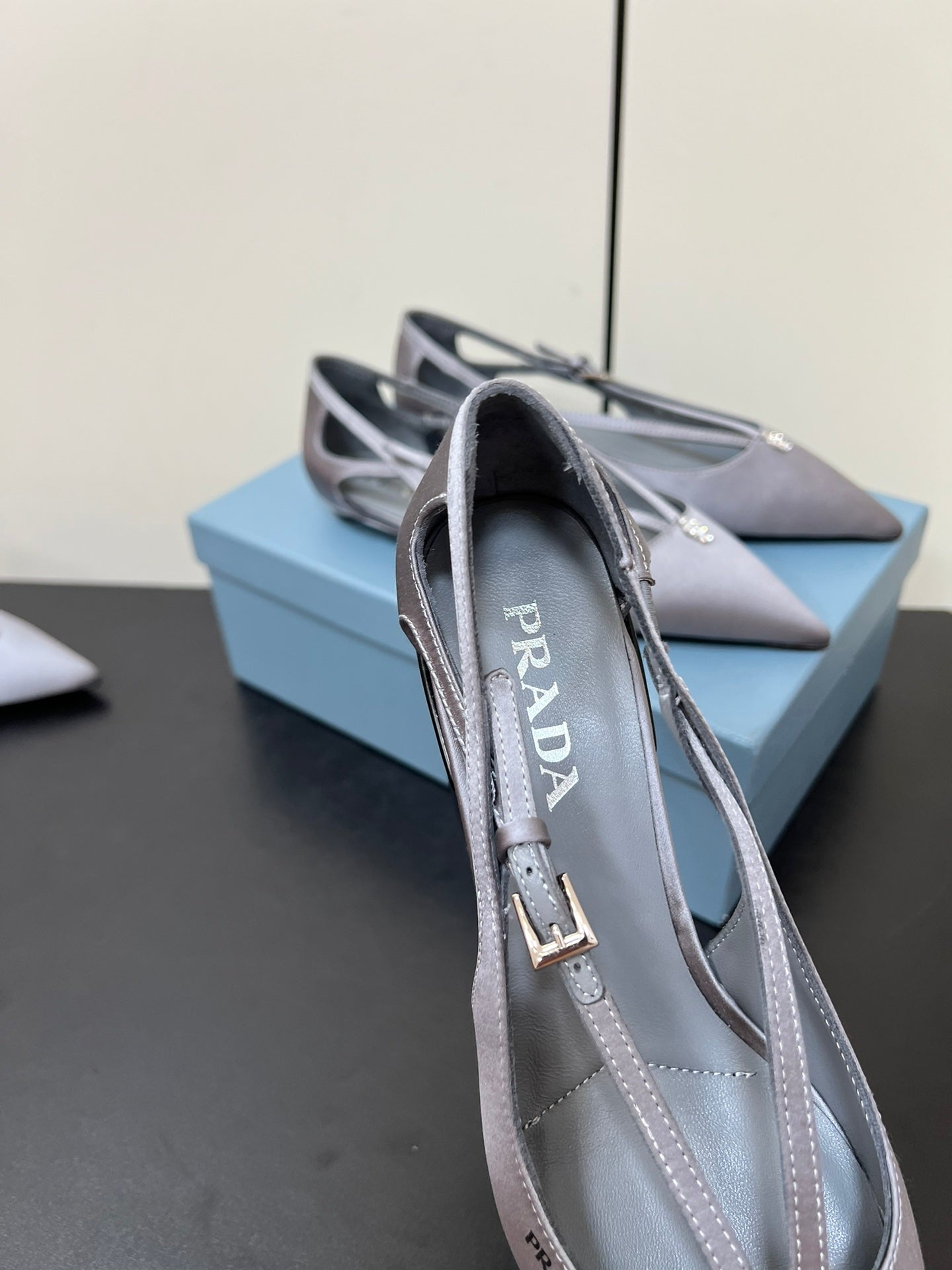 CUT-OUT PUMPS WITH BEAD BUCKLE IN WARM GRAY SATIN