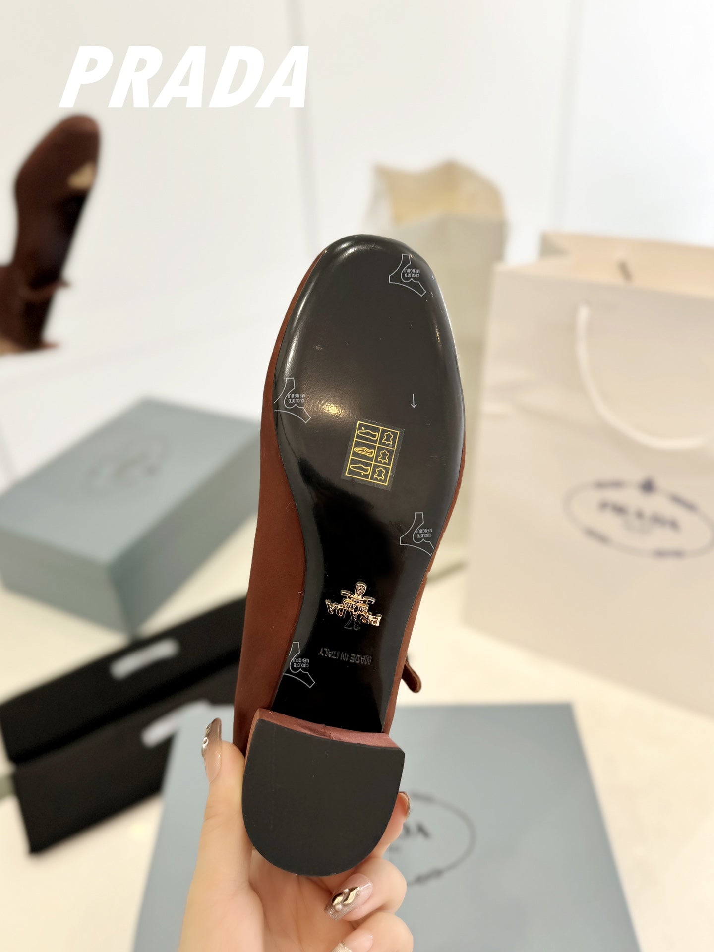 Pra Pumps 50 Square Sole Brown Suede Fabric