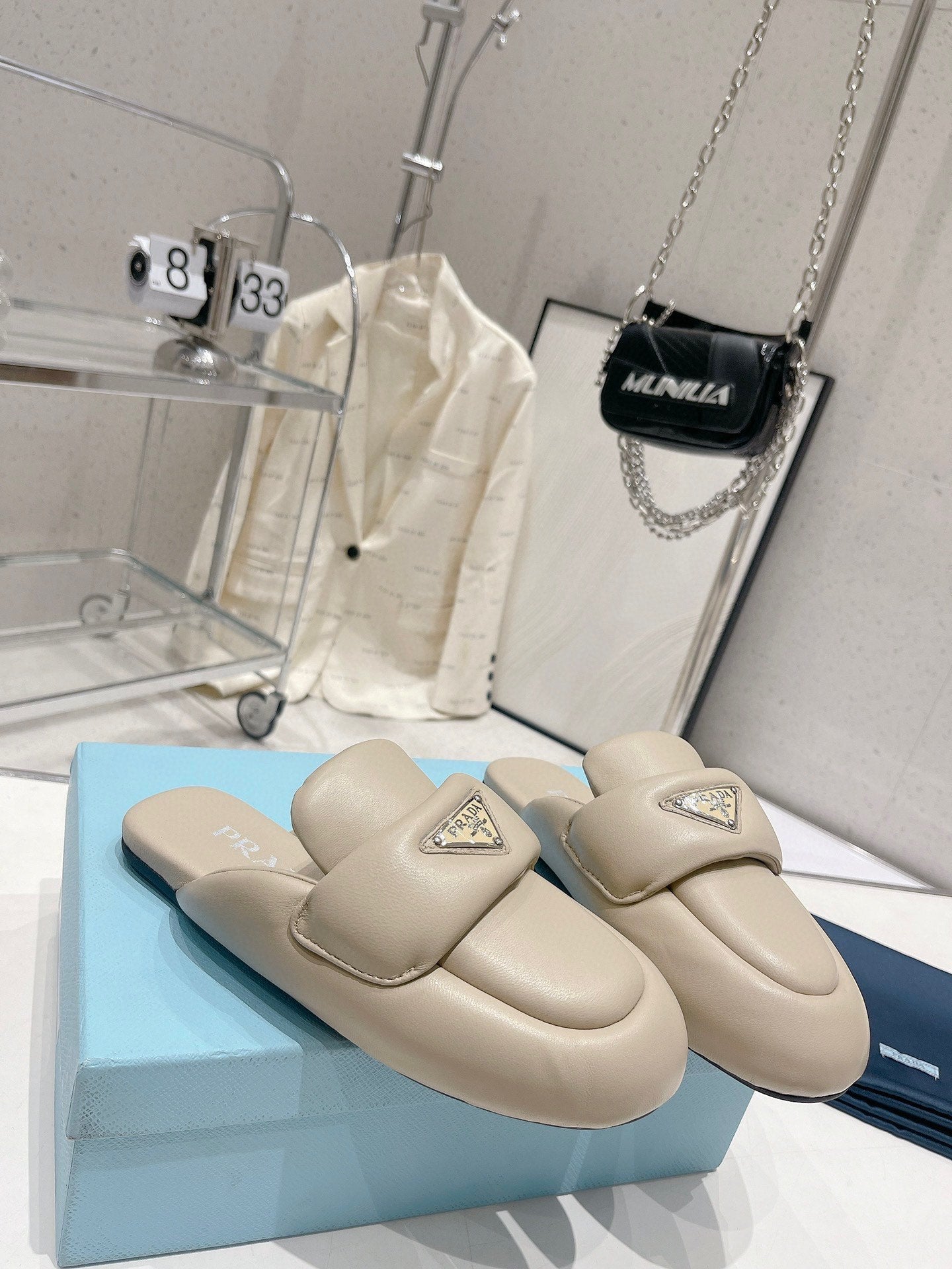 PRA SOFT PADDED NAPPA SHEARLING MULES BEIGE LAMBSKIN