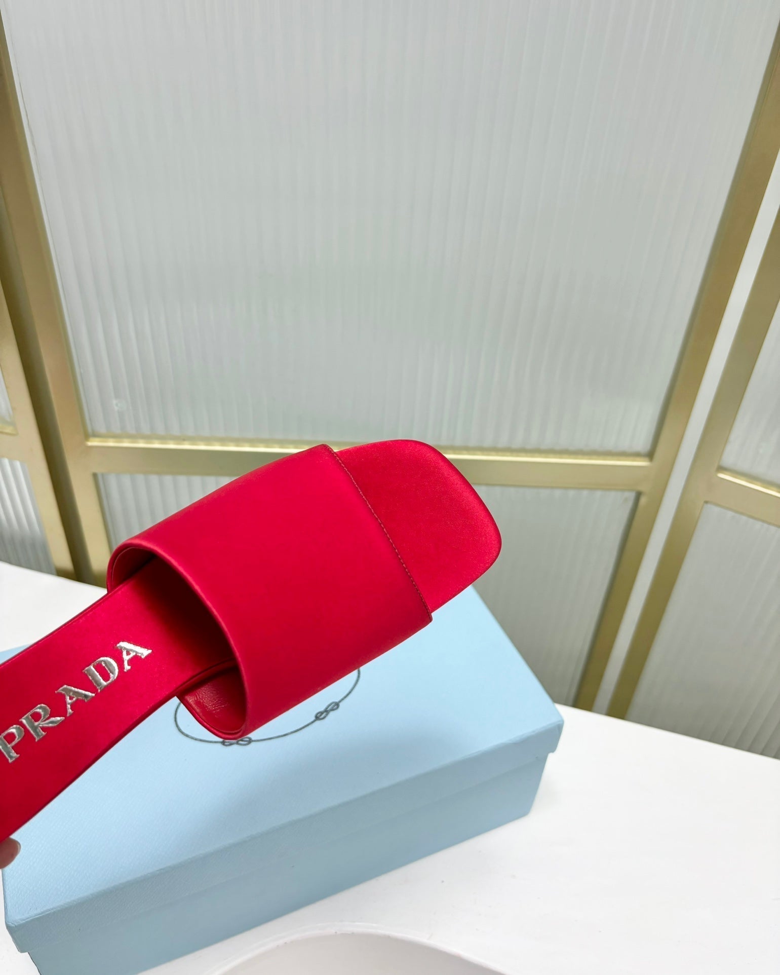 PRA TRIANGLE HEEL SATIN SLIPPERS CRIMSON