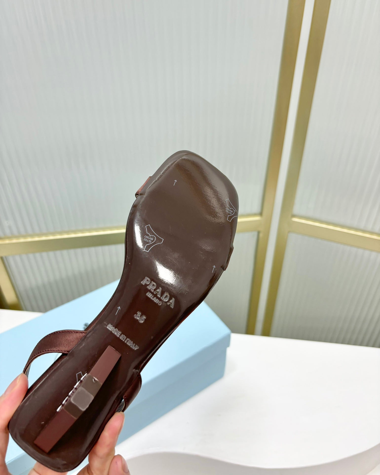 PRA TRIANGLE HEEL SATIN SLIPPERS BROWN