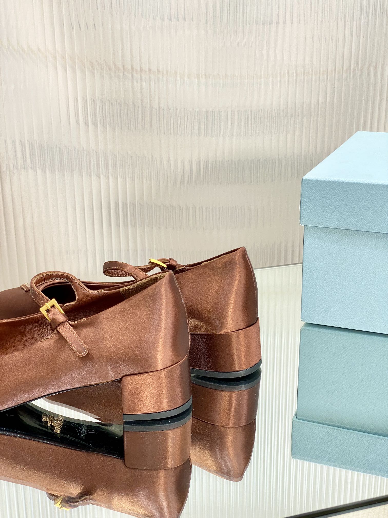 PRA NAPPA MARY JANE FLAT BROWN SATIN