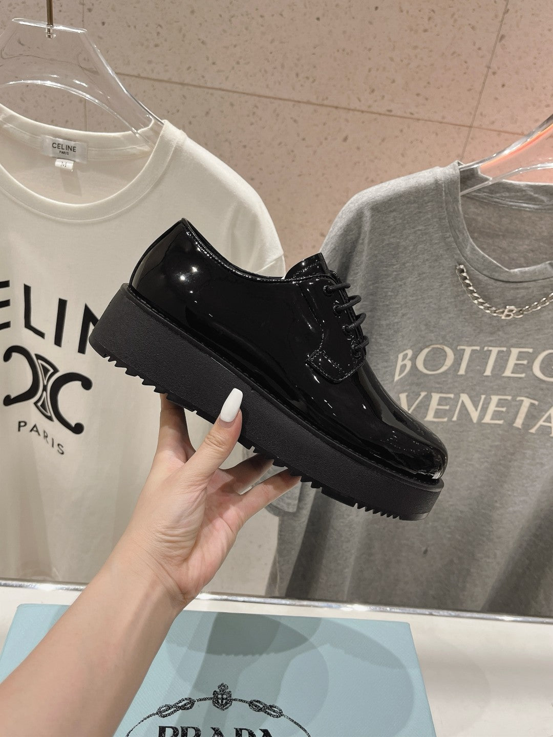 PRA BRUSHED LEATHER DERBY SHOES GLOSSY BLACK